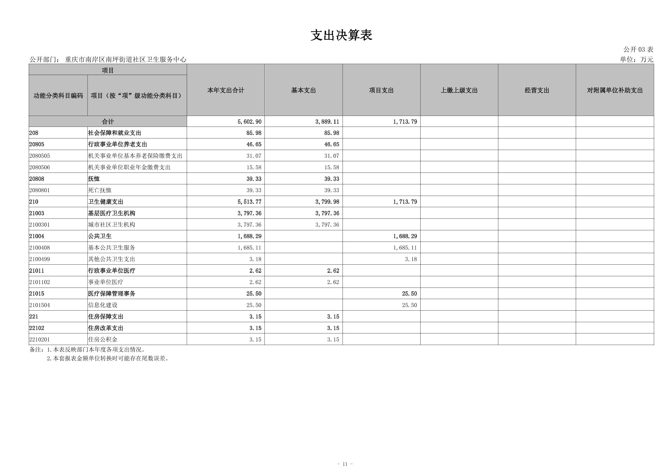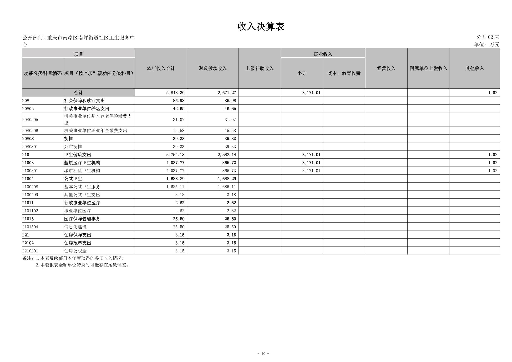 2024年度重庆市南岸区南坪街道社区卫生服务中心决算公开