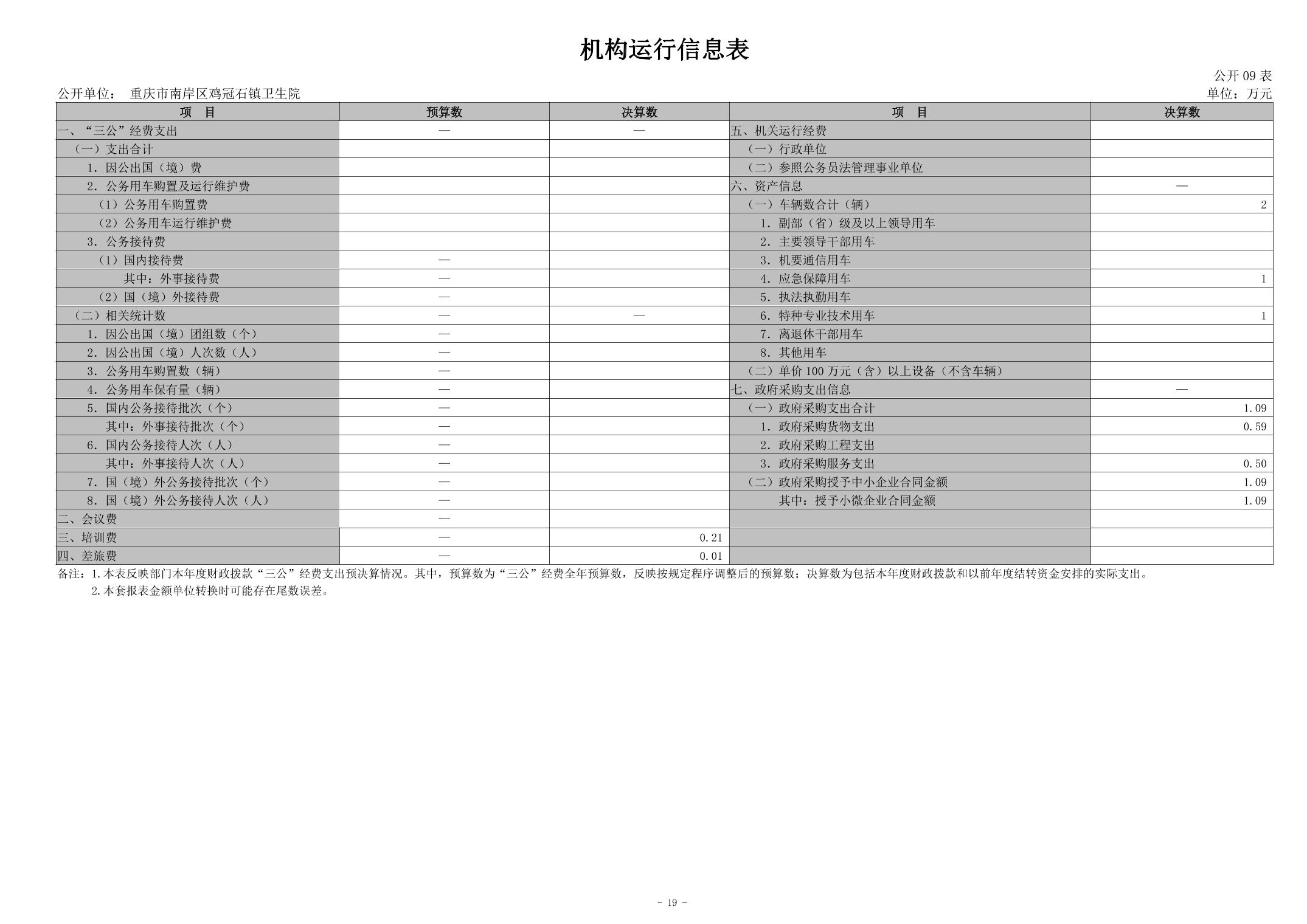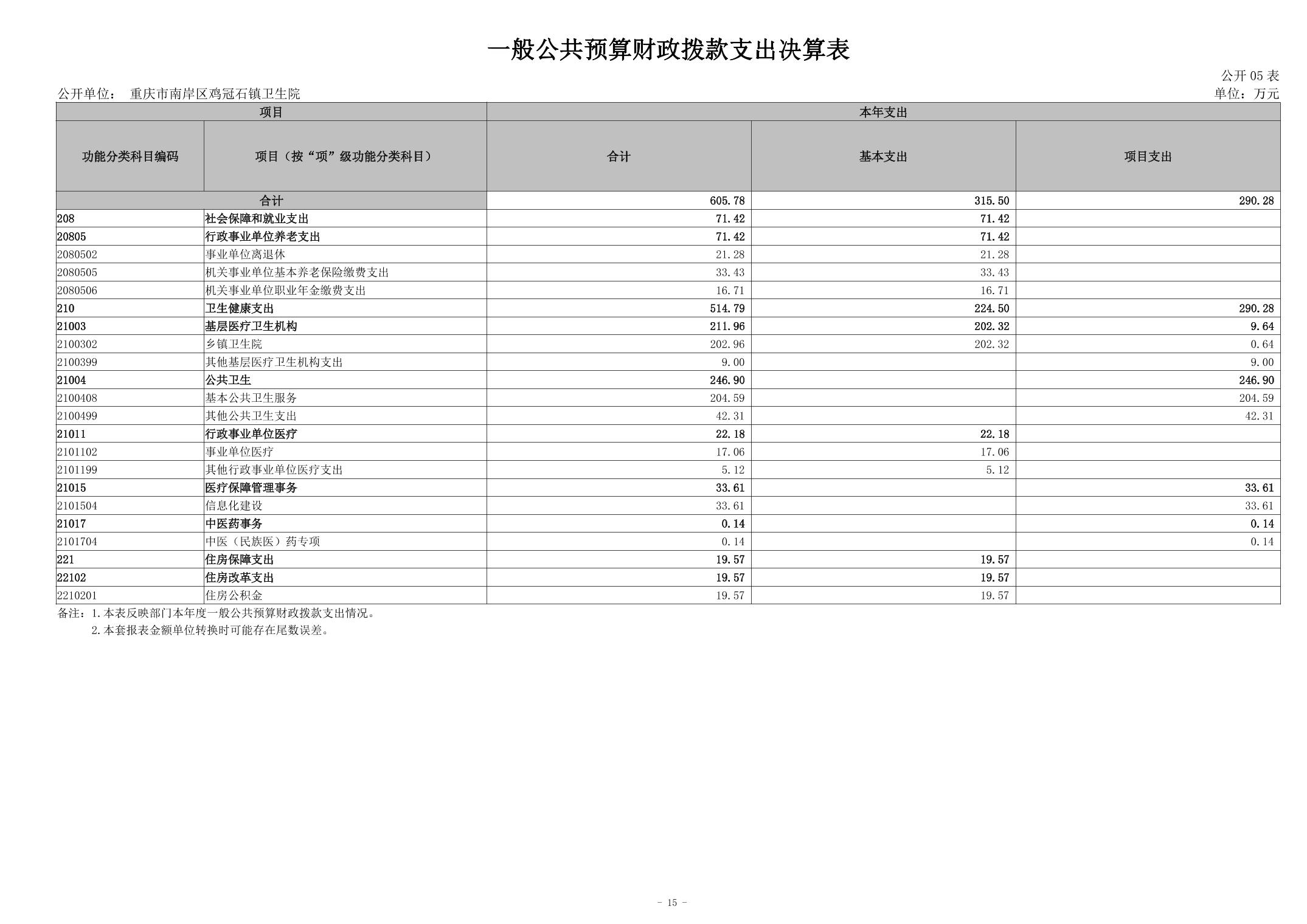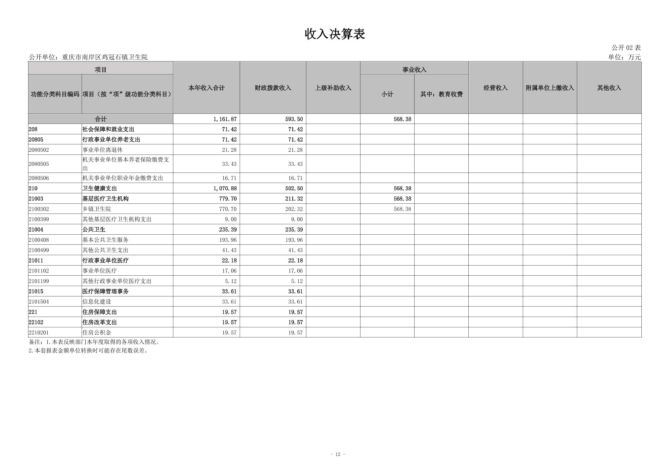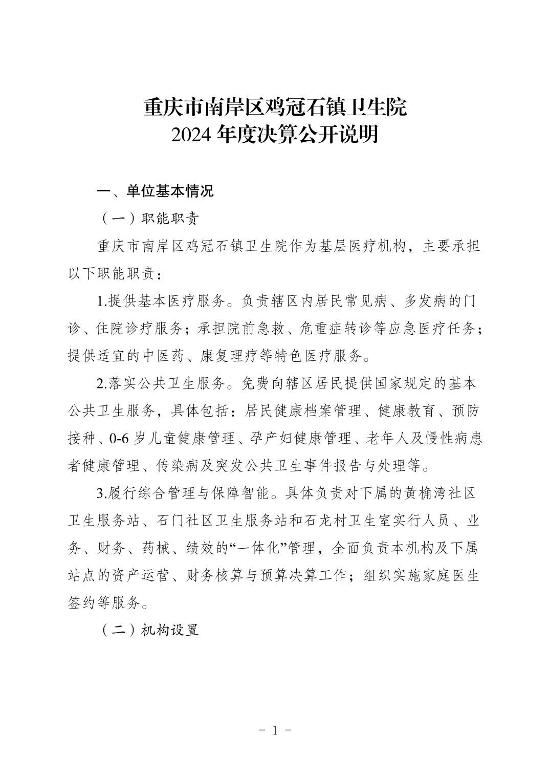 2024年度重庆市南岸区鸡冠石镇卫生院决算公开