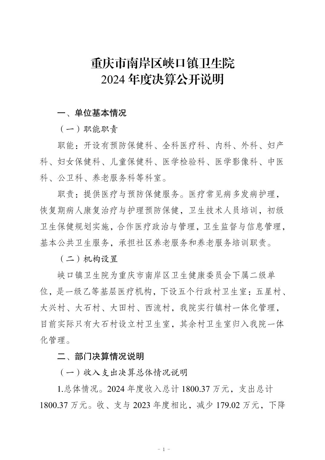 2024年度重庆市南岸区峡口镇卫生院决算公开