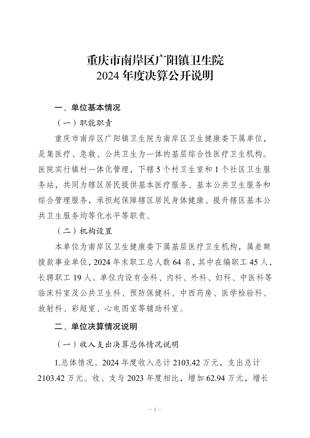 2024年度重庆市南岸区广阳镇卫生院决算公开