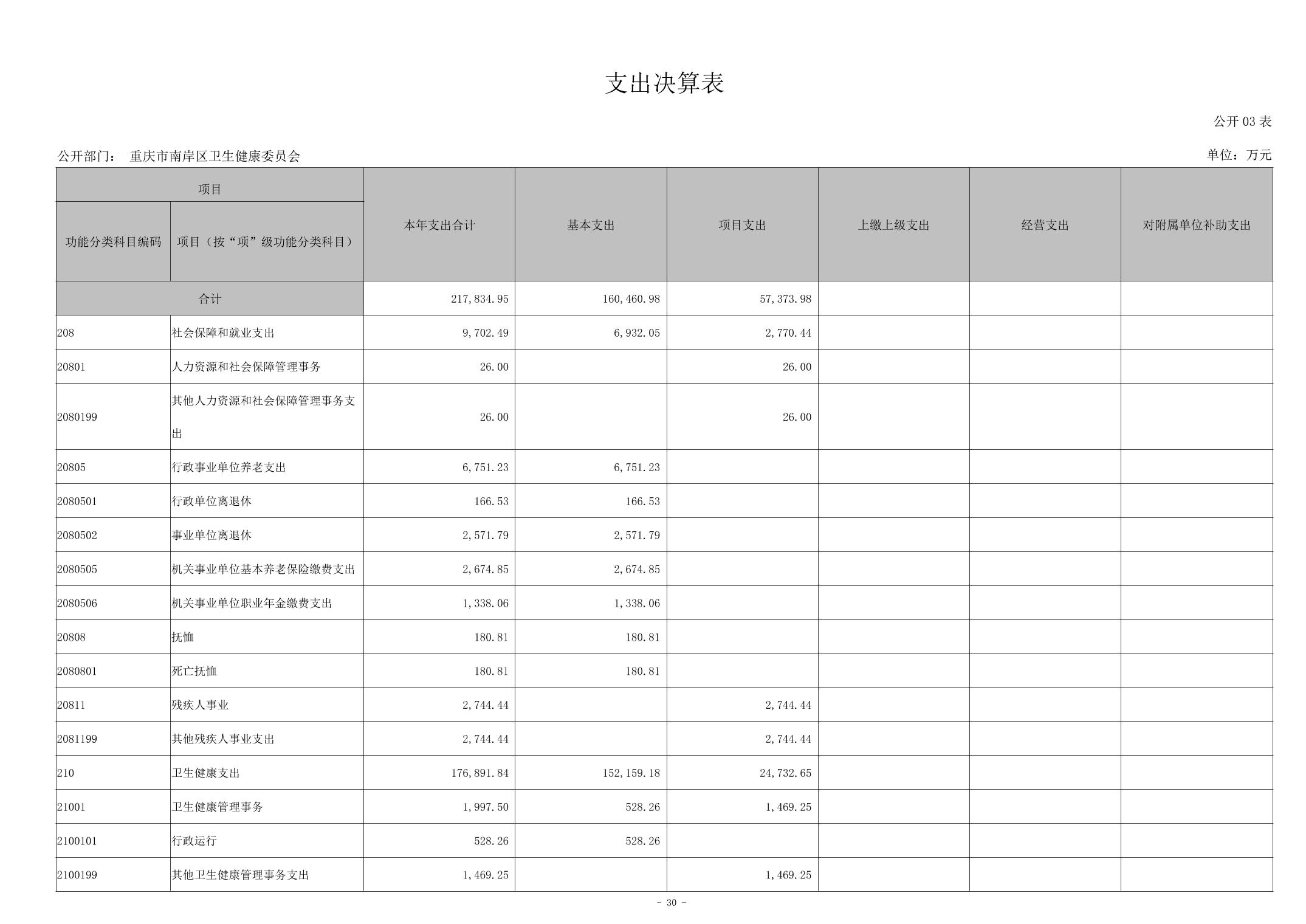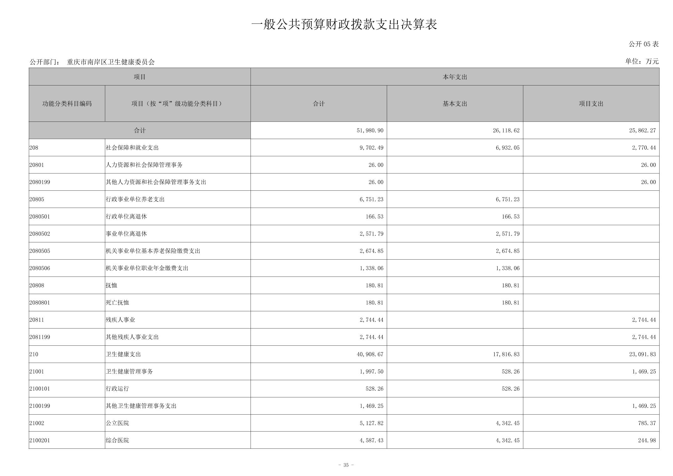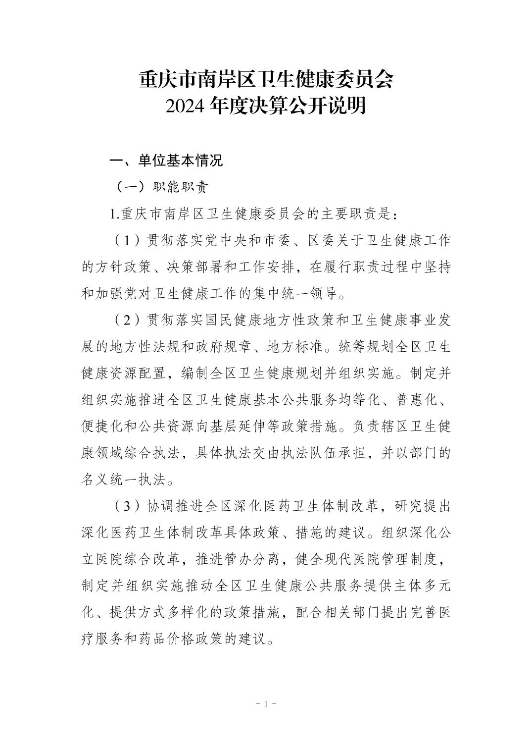 2024年度重庆市南岸区卫生健康委员会决算公开(部门)