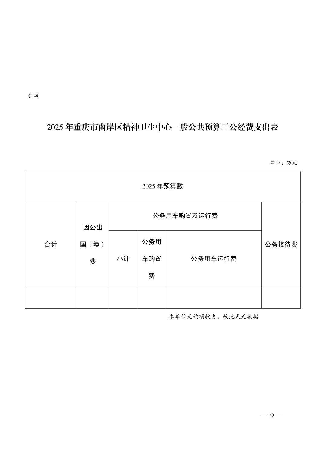 重庆市南岸区精神卫生中心2025年单位预算情况说明