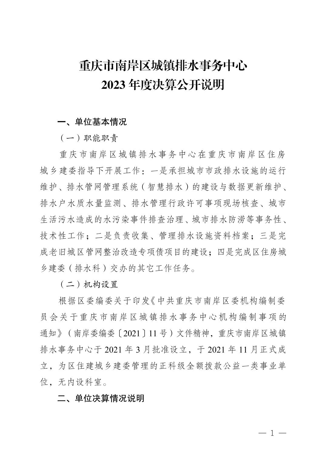 重庆市南岸区城镇排水事务中心2023年度决算公开说明