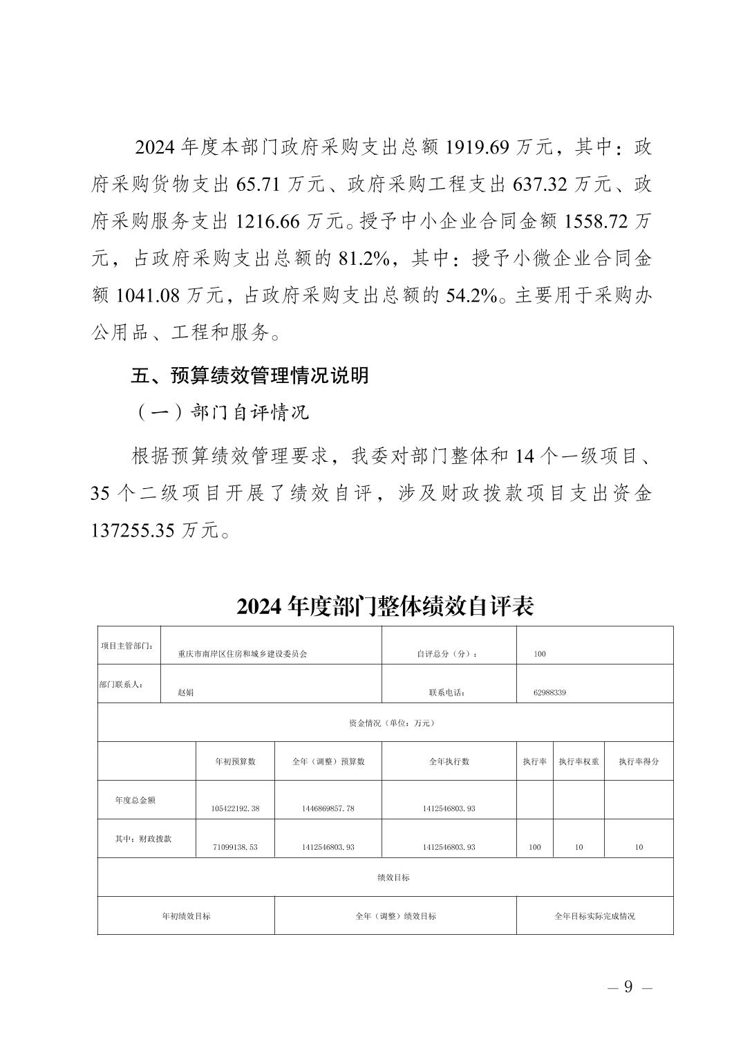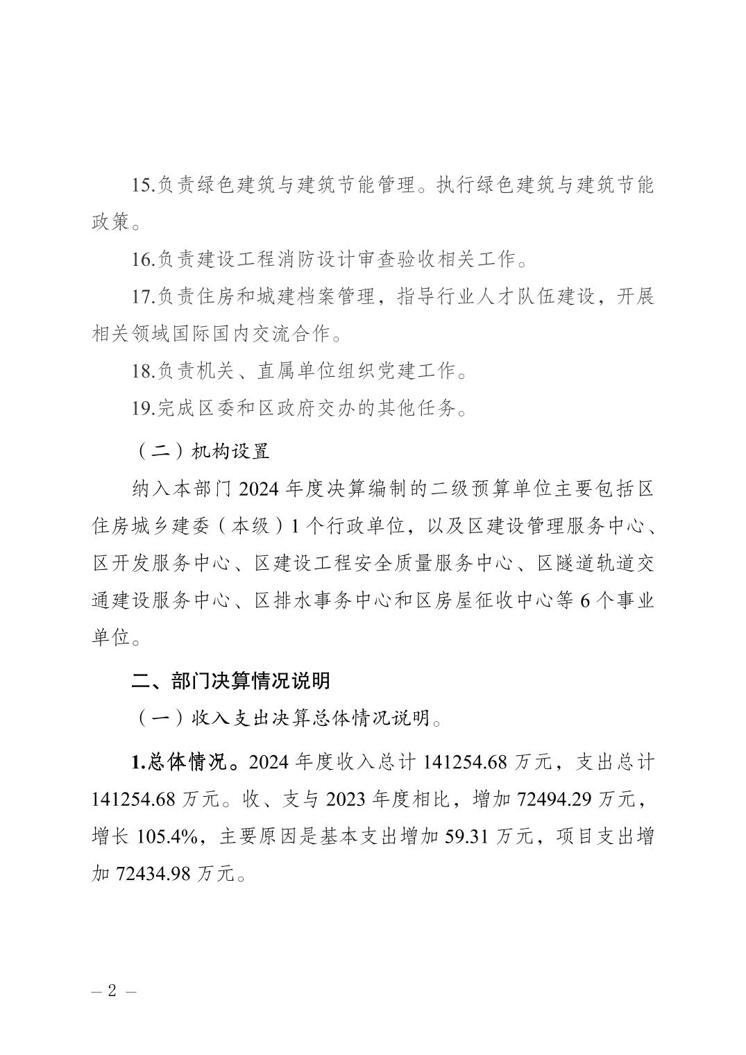 重庆市南岸区住房和城乡建设委员会2024年度决算公开说明