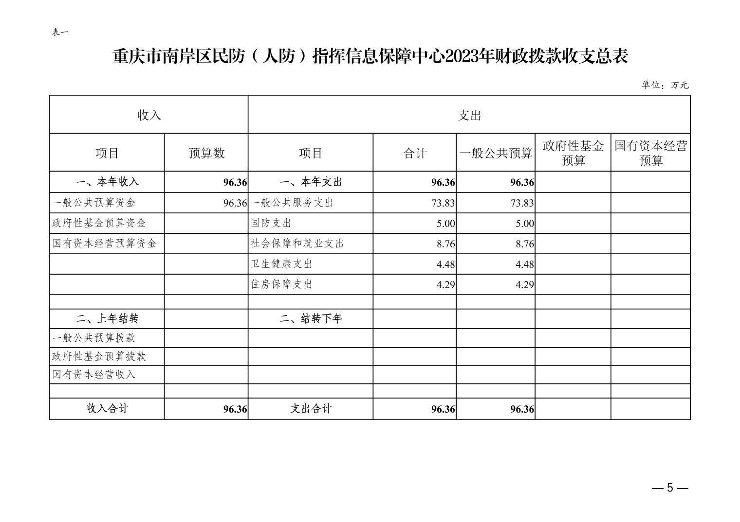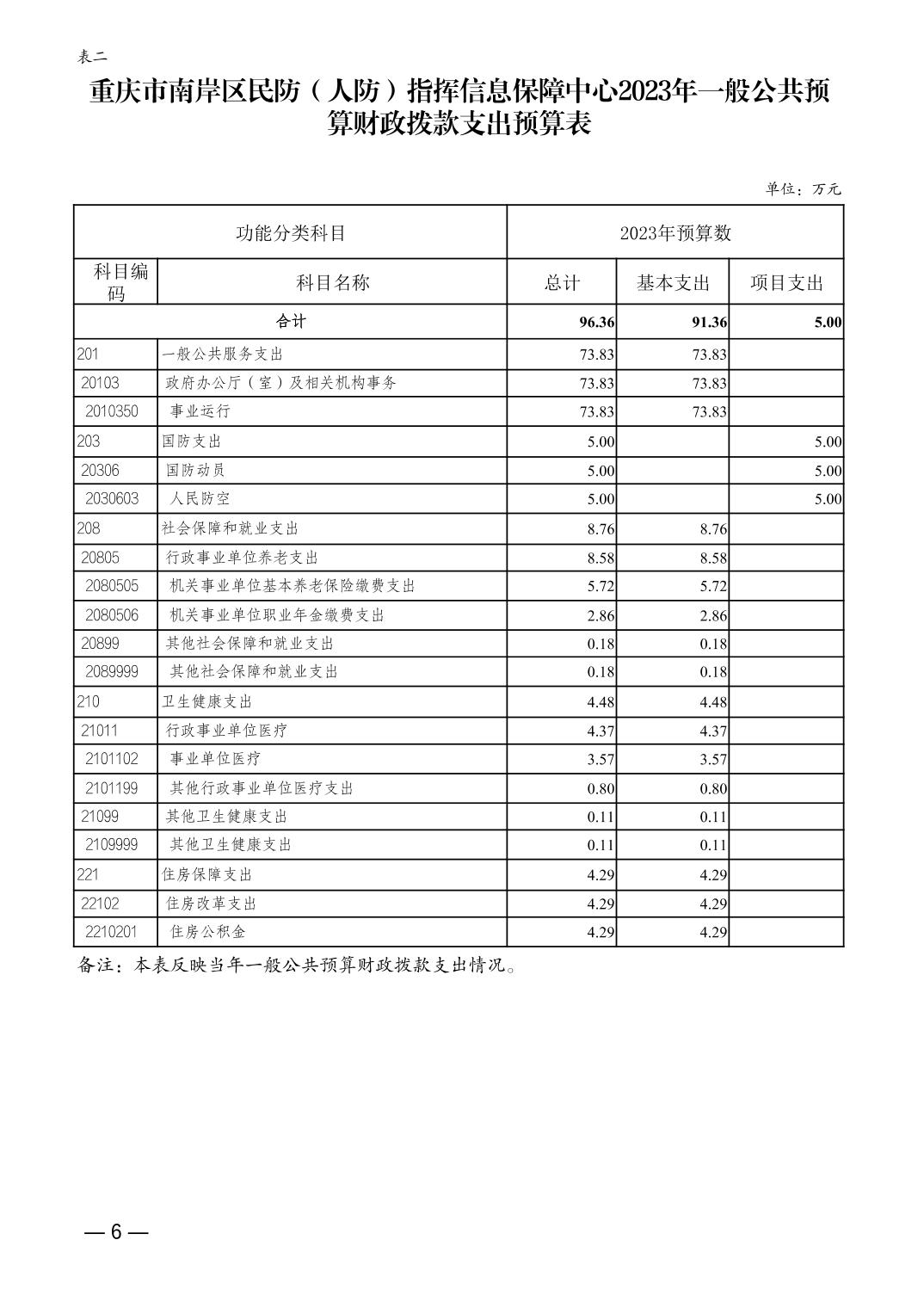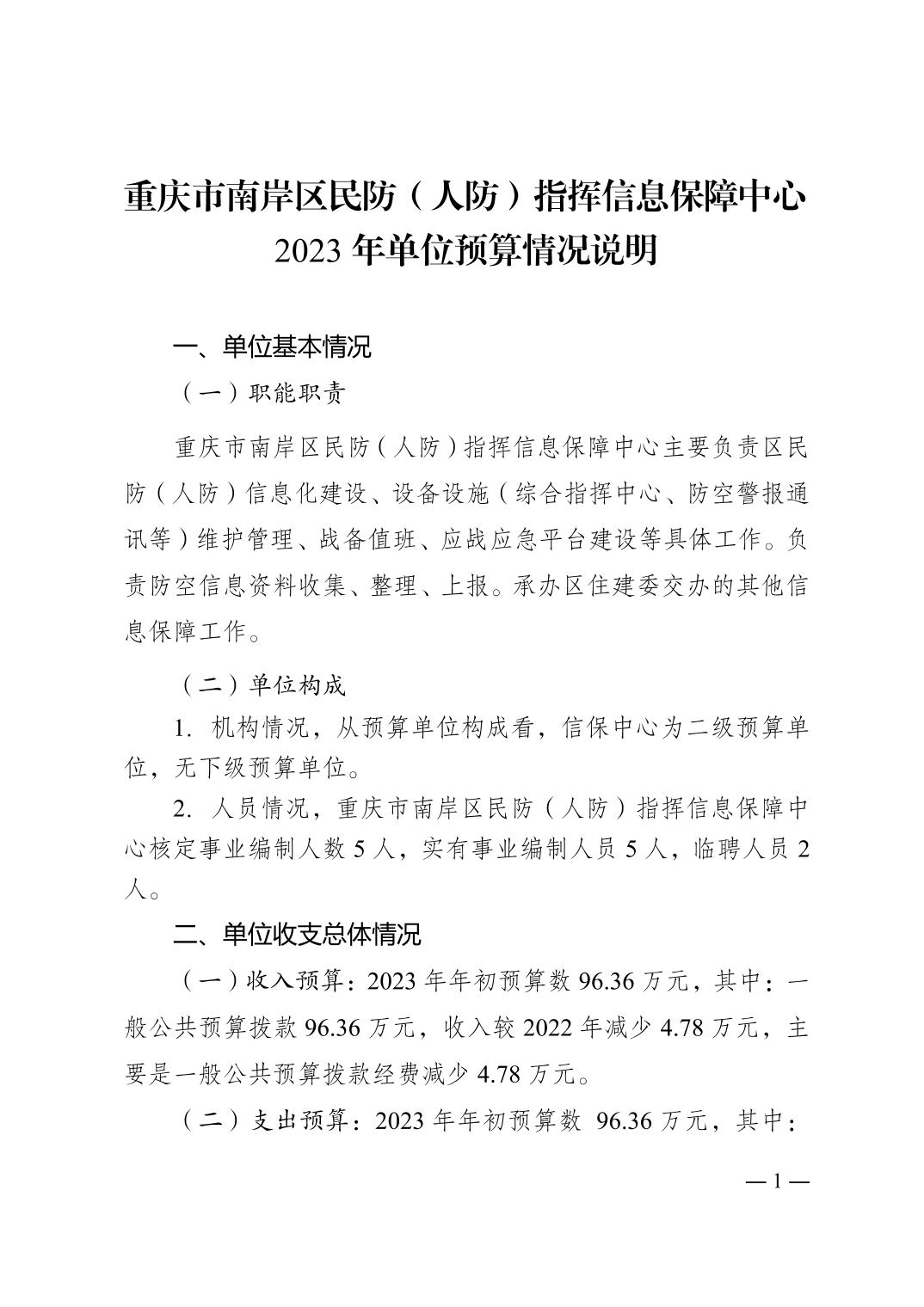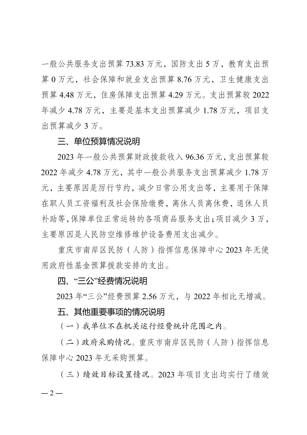 重庆市南岸区民防(人防)指挥信息保障中心2023年单位预算情况说明