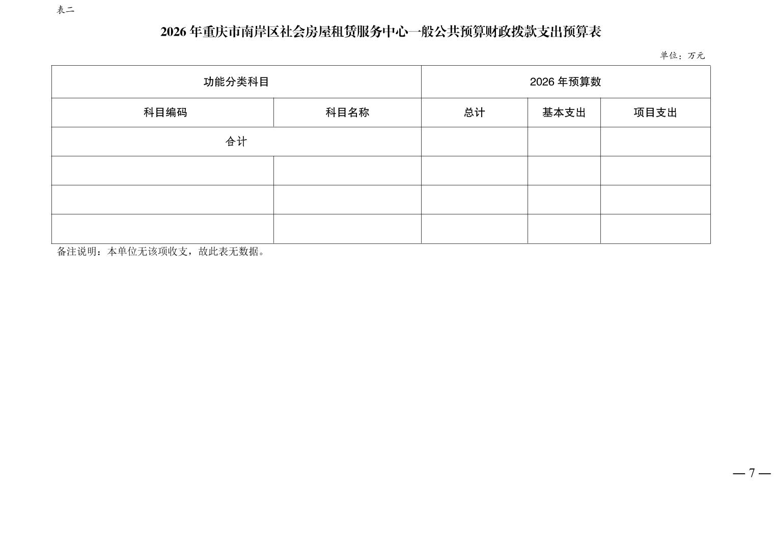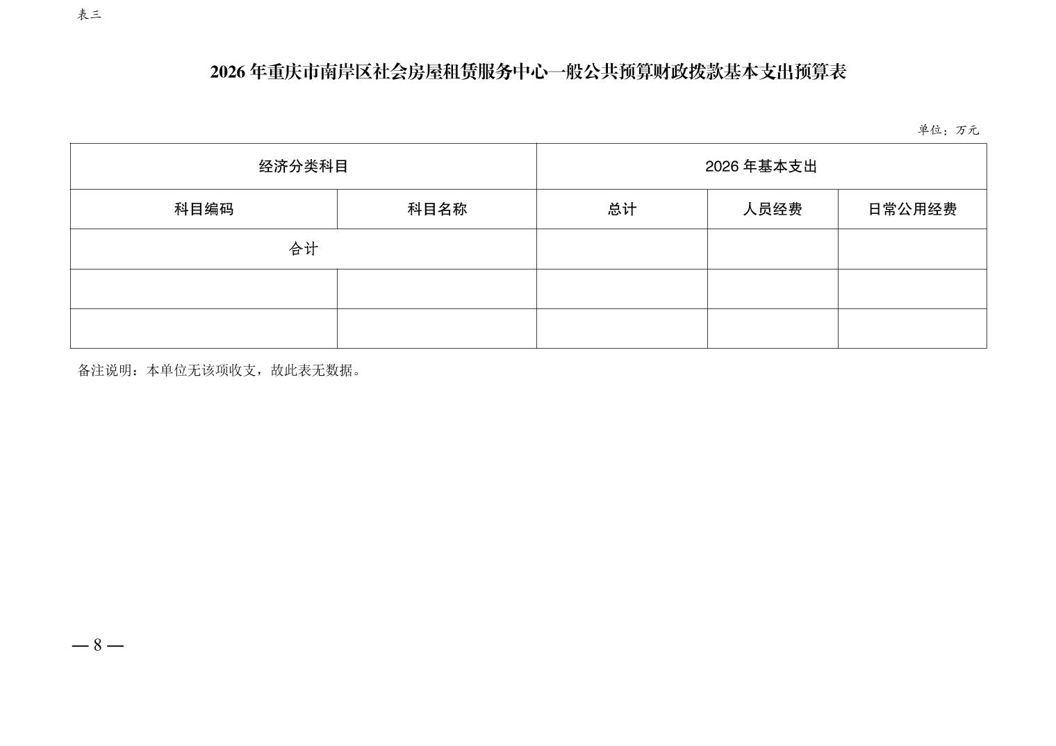 重庆市南岸区社会房屋租赁服务中心2026年单位预算情况说明