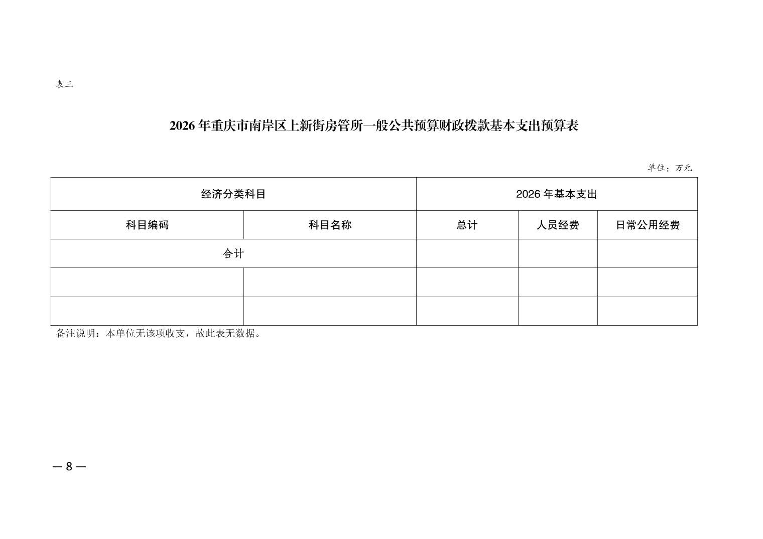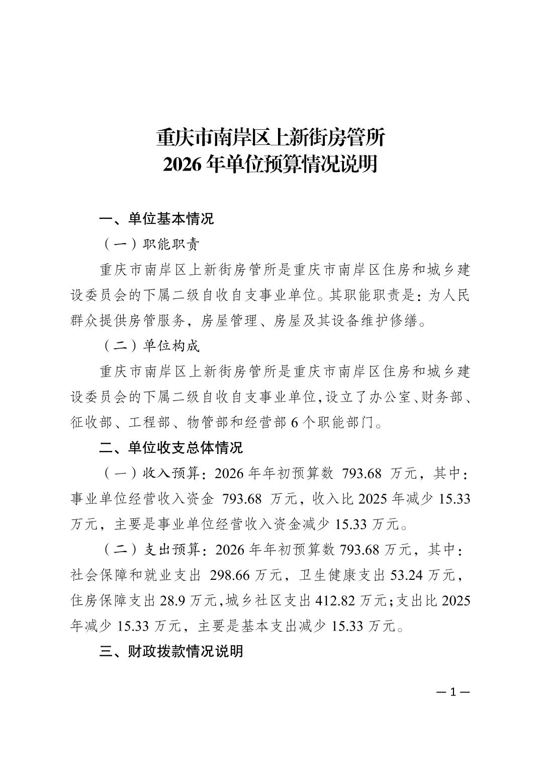 重庆市南岸区上新街房管所2026年单位预算情况说明