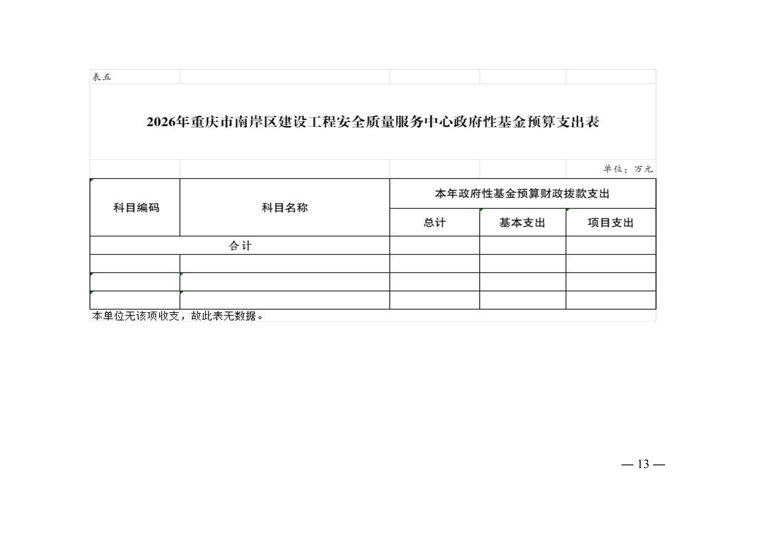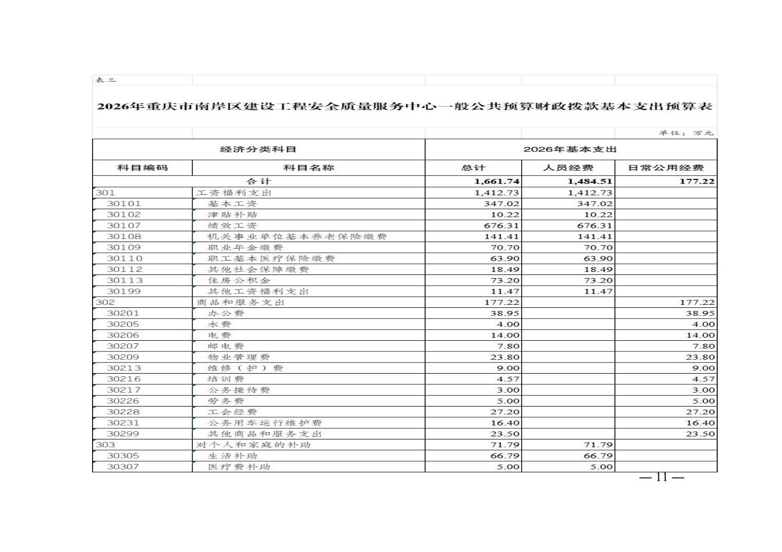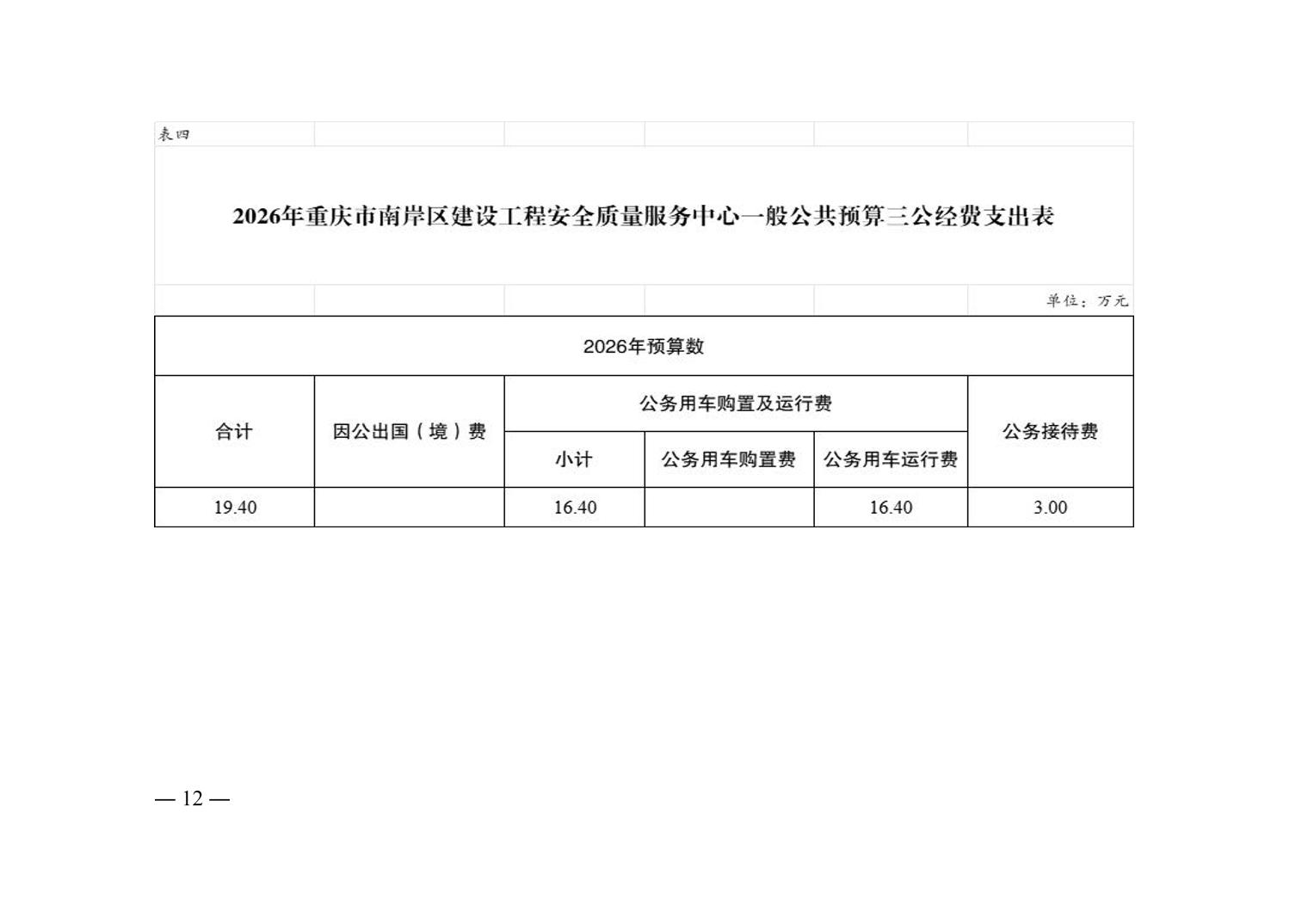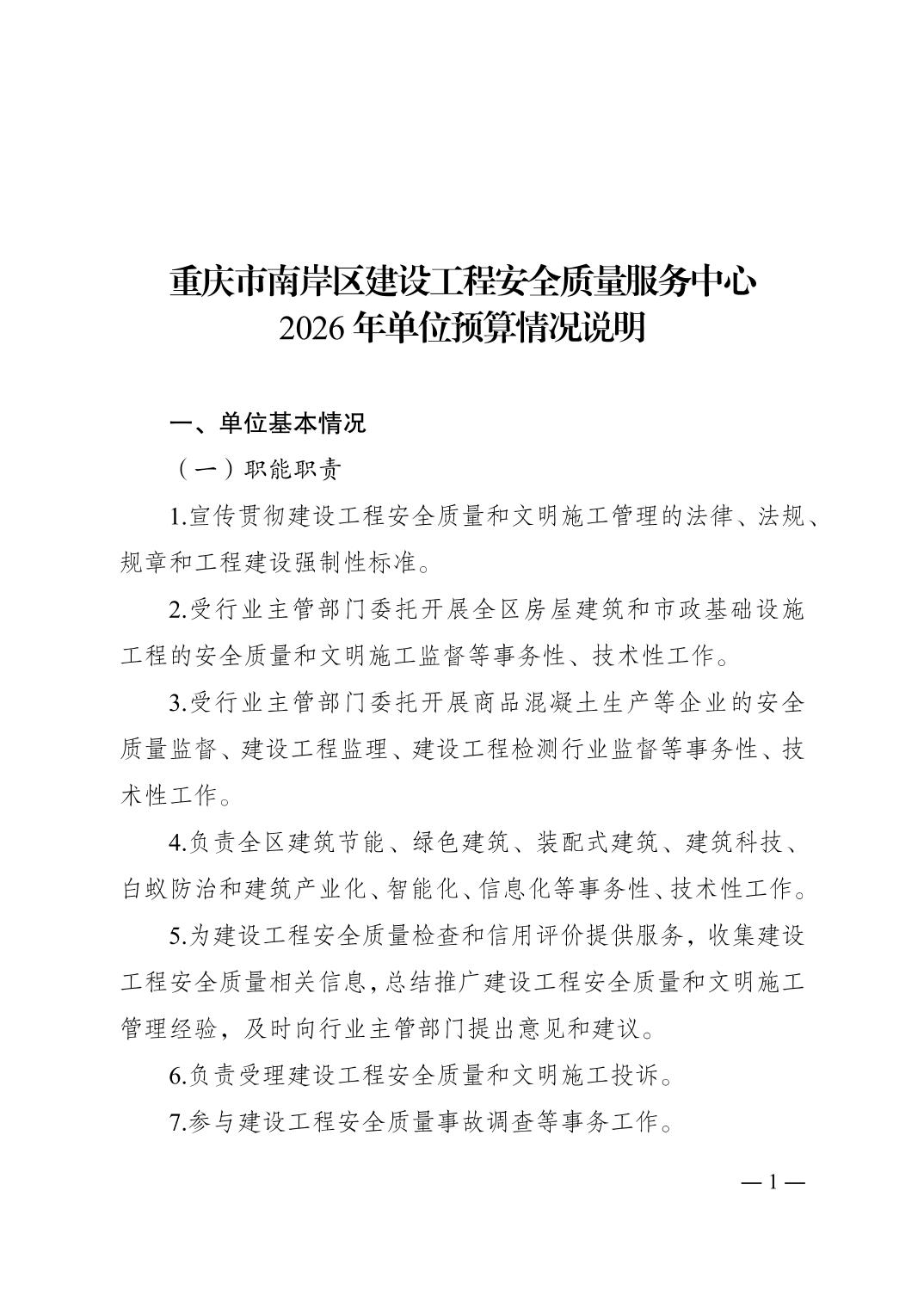 重庆市南岸区建设工程安全质量服务中心2026年单位预算情况说明
