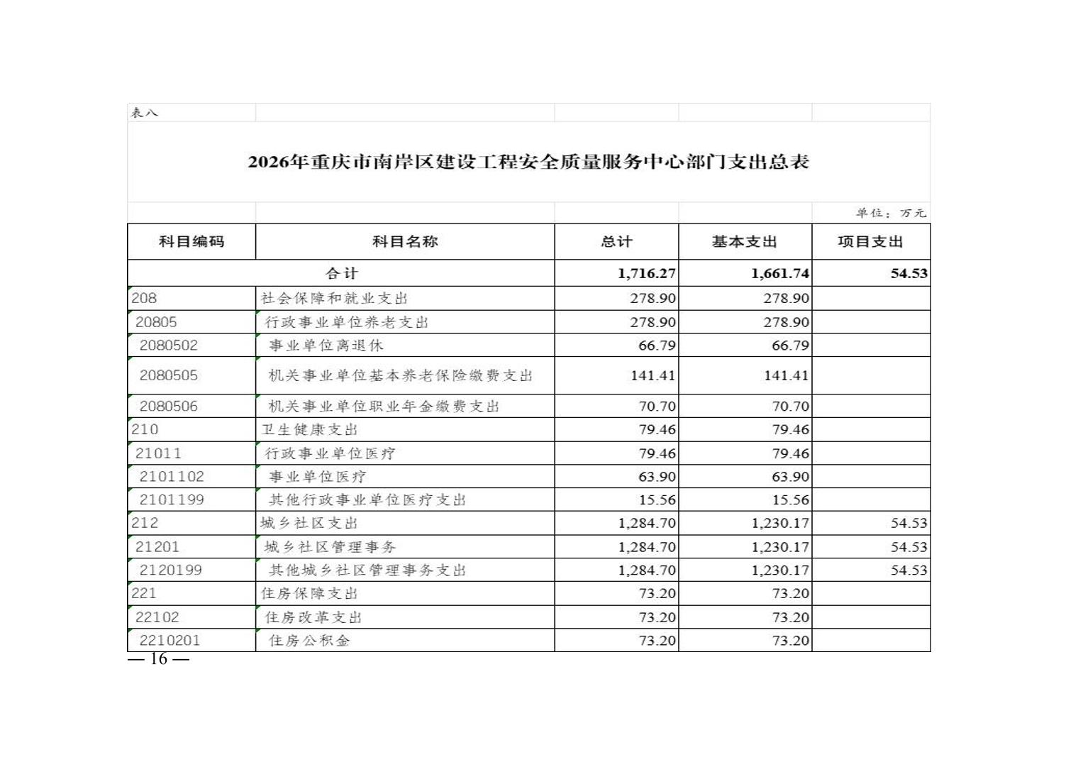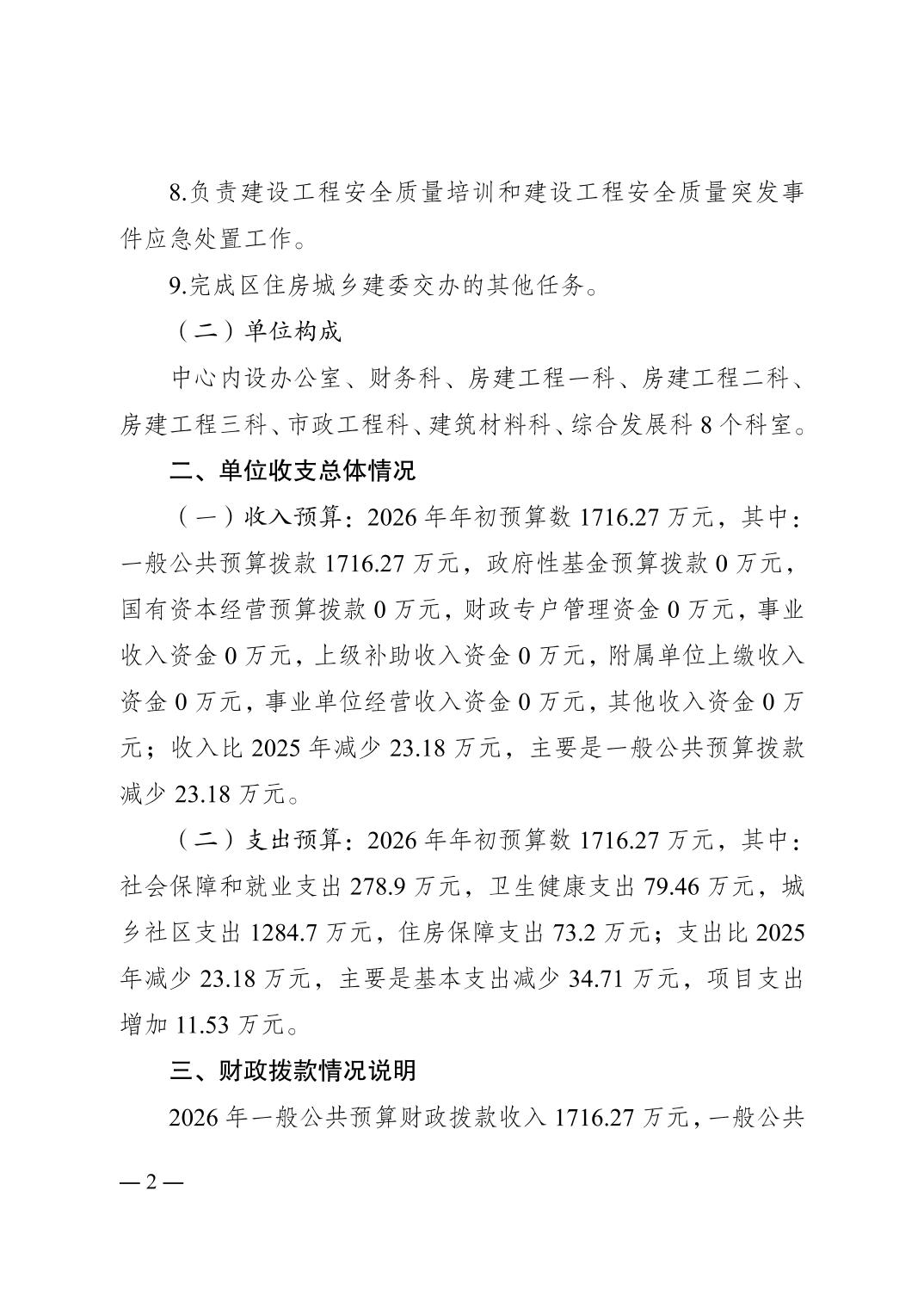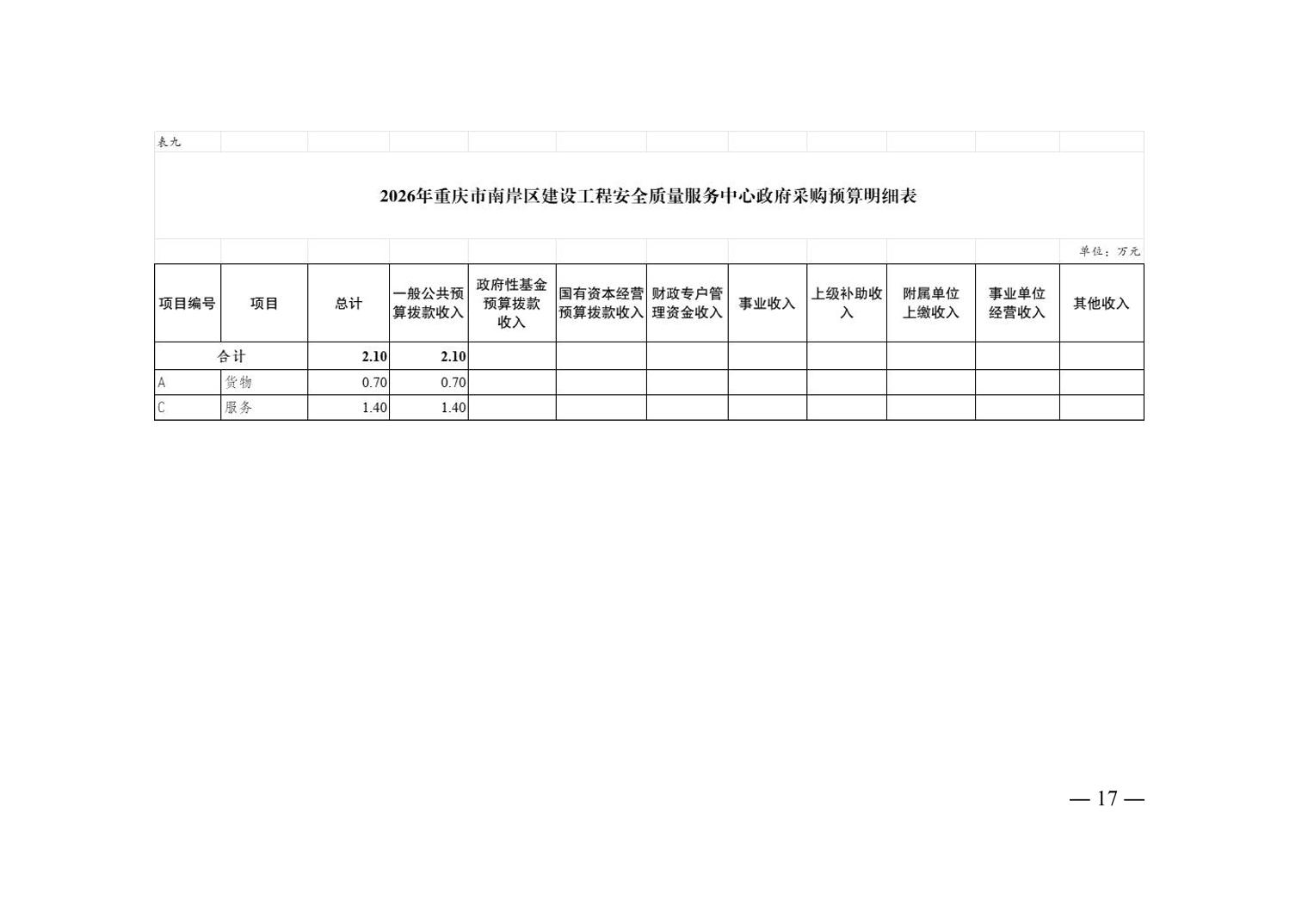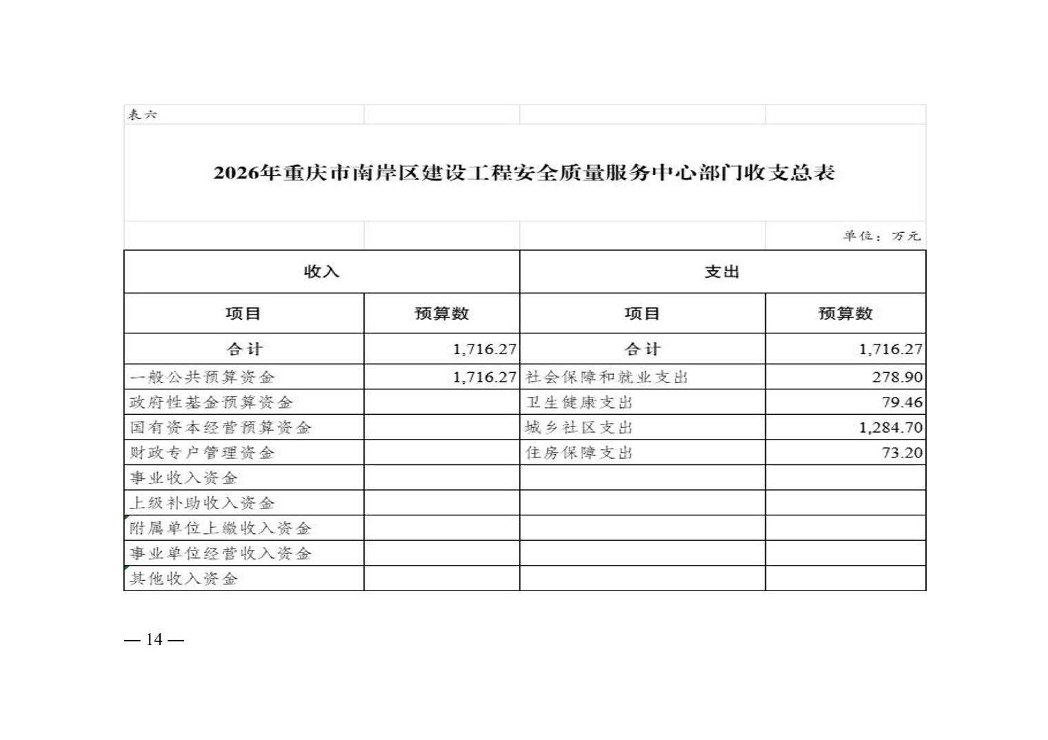 重庆市南岸区建设工程安全质量服务中心2026年单位预算情况说明