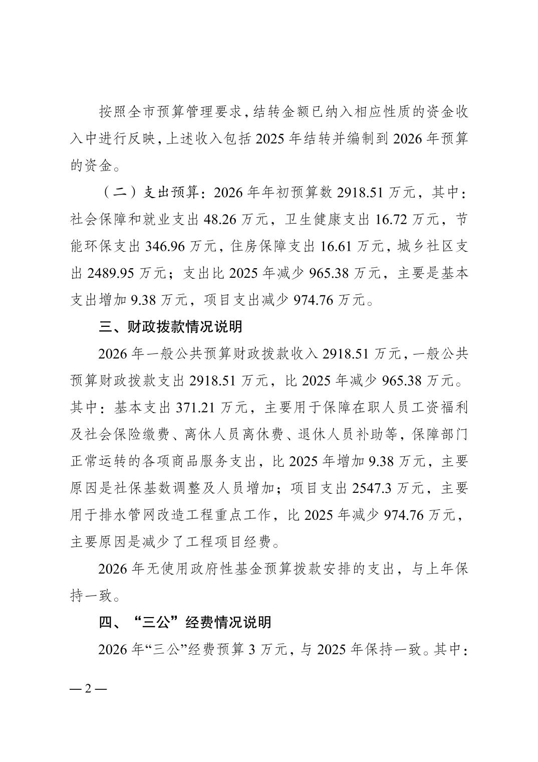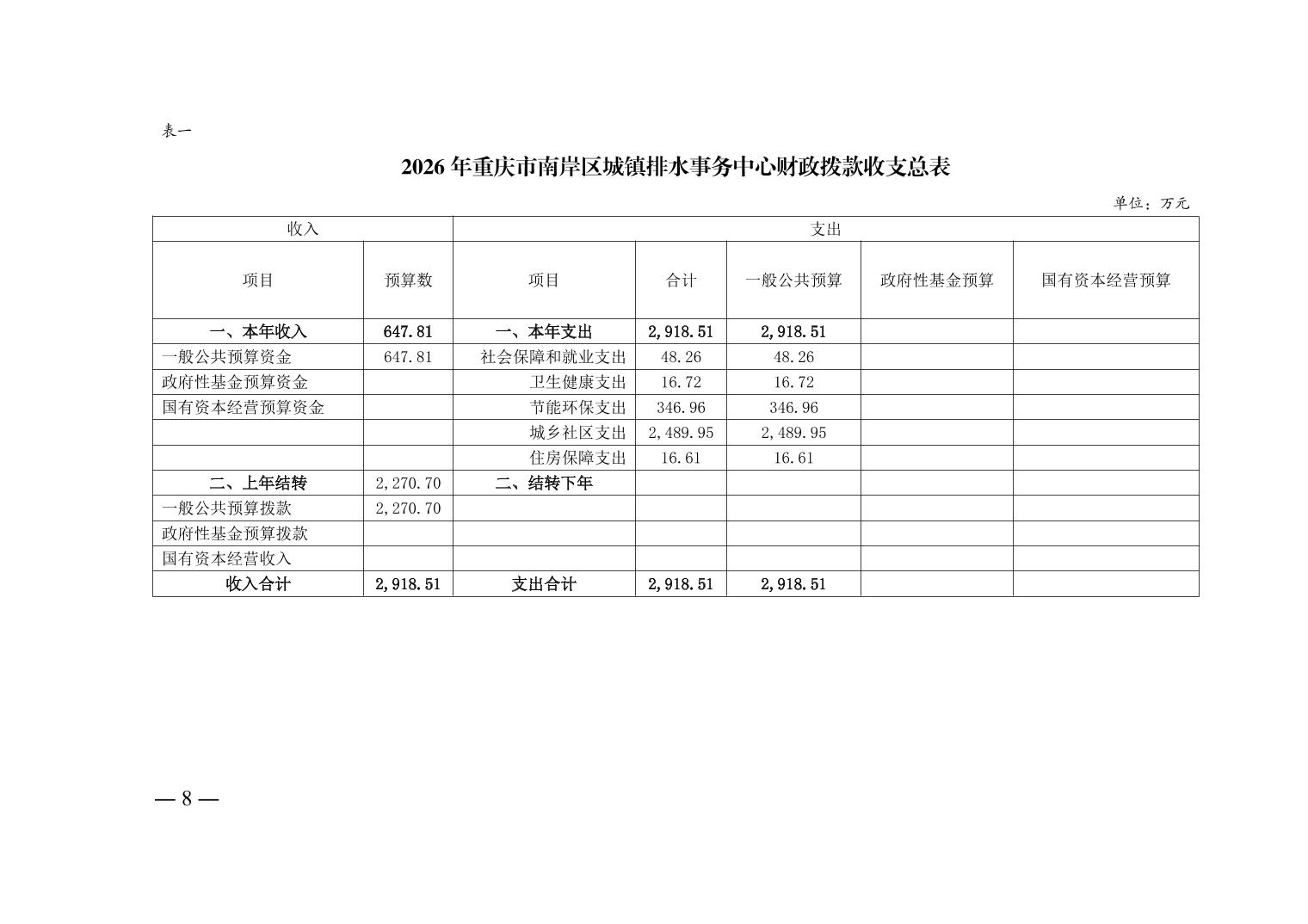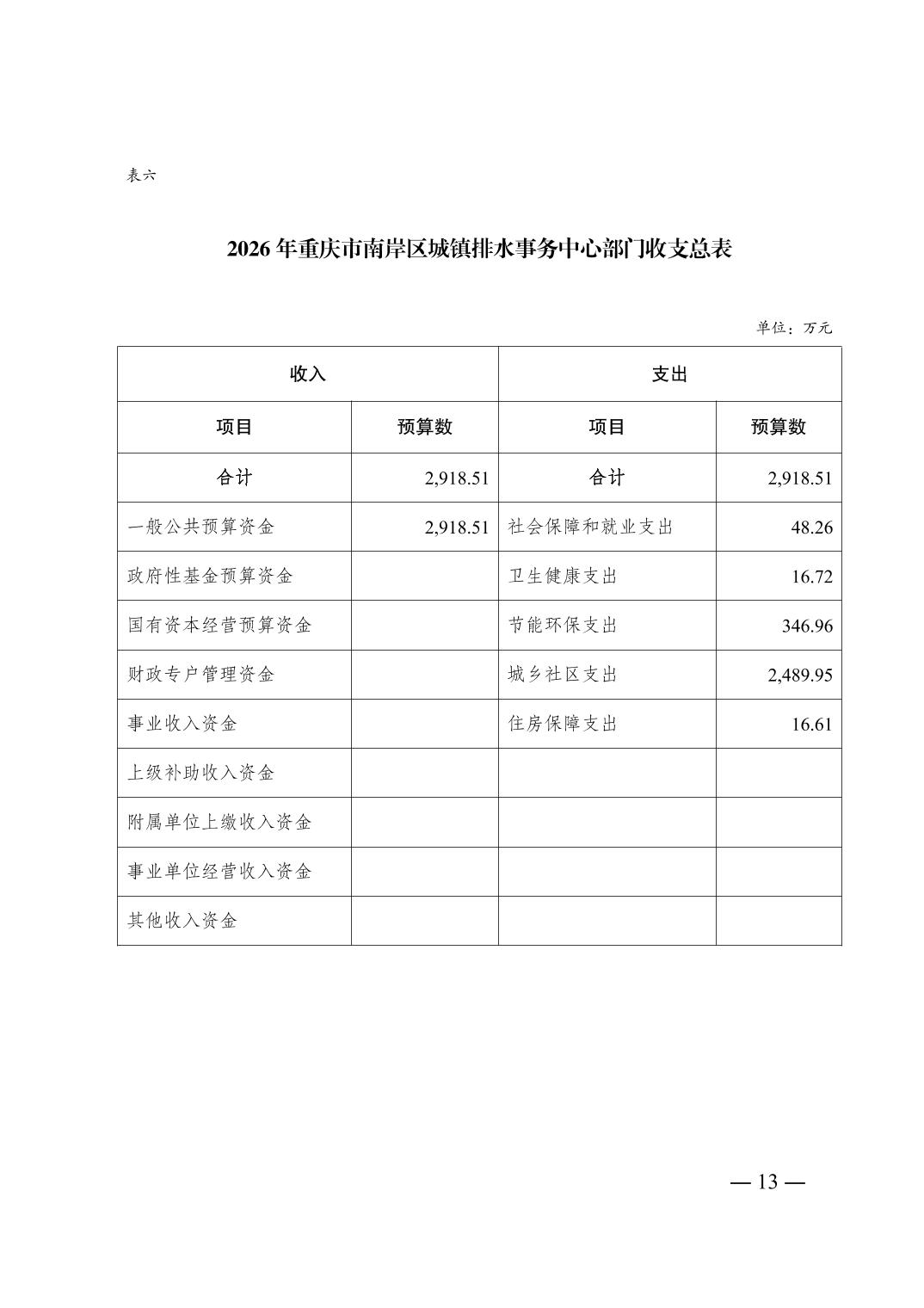 重庆市南岸区城镇排水事务中心2026年单位预算情况说明