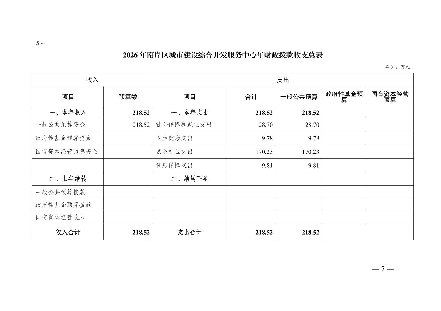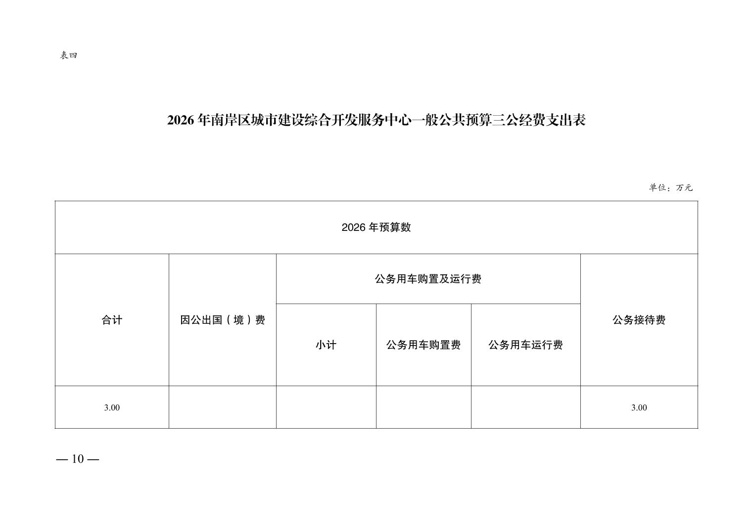 重庆市南岸区城市建设综合开发服务中心2026年单位预算情况说明