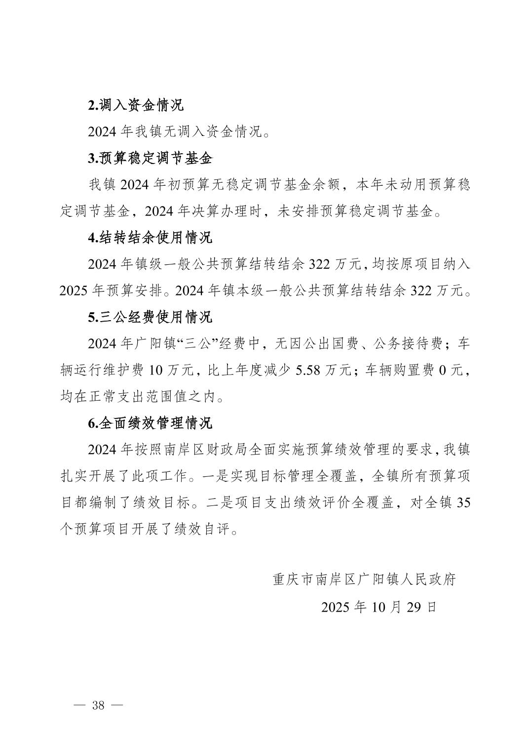 重庆市南岸区广阳镇人民政府关于2024年财政总决算情况的报告