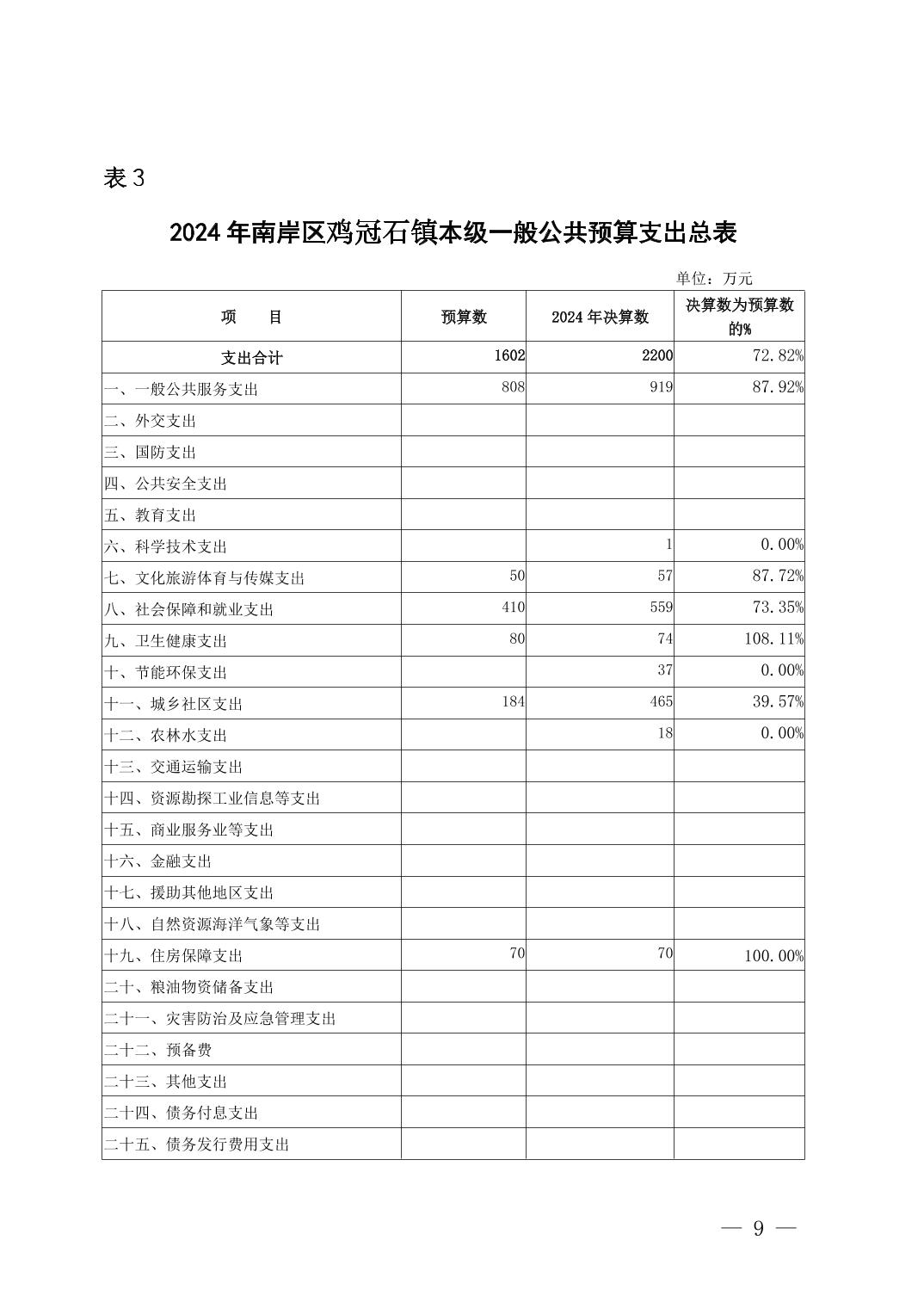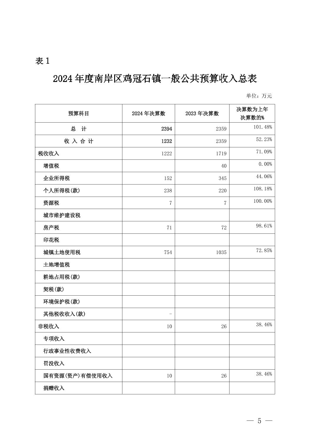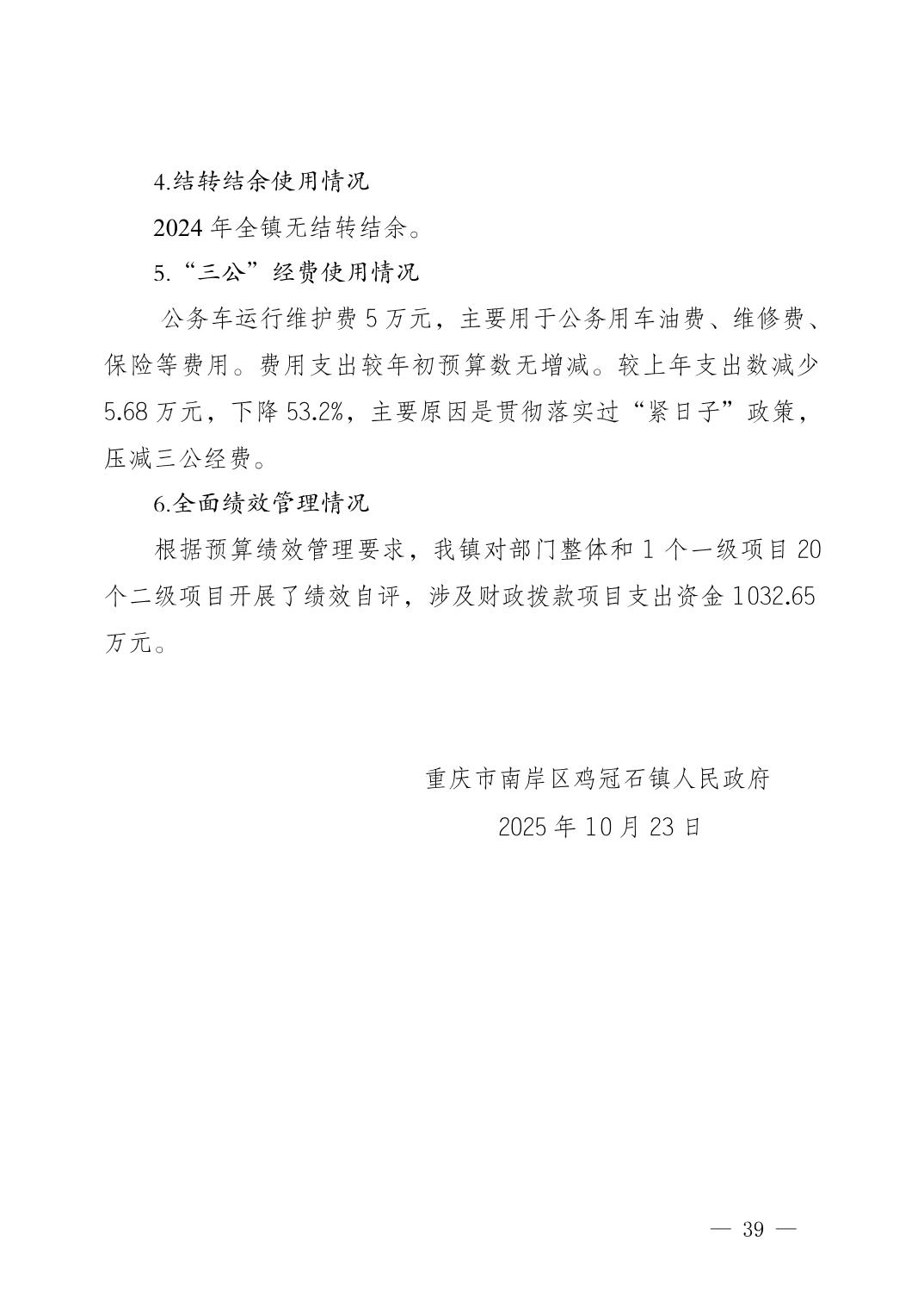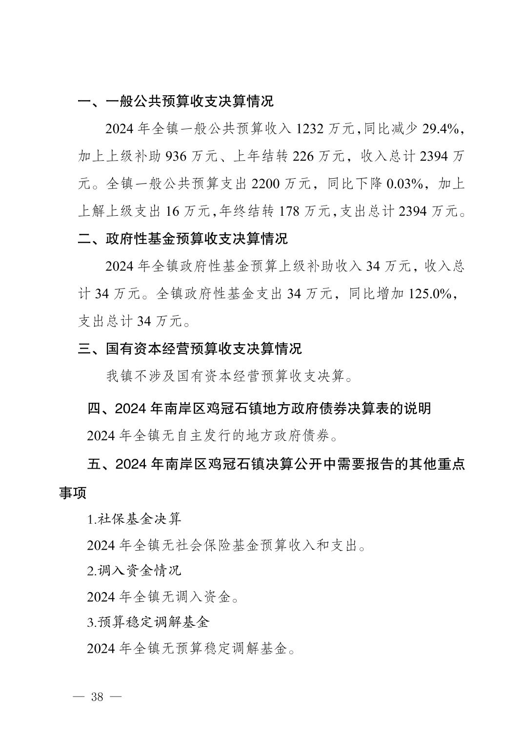 重庆市南岸区鸡冠石镇人民政府2024年财政总决算