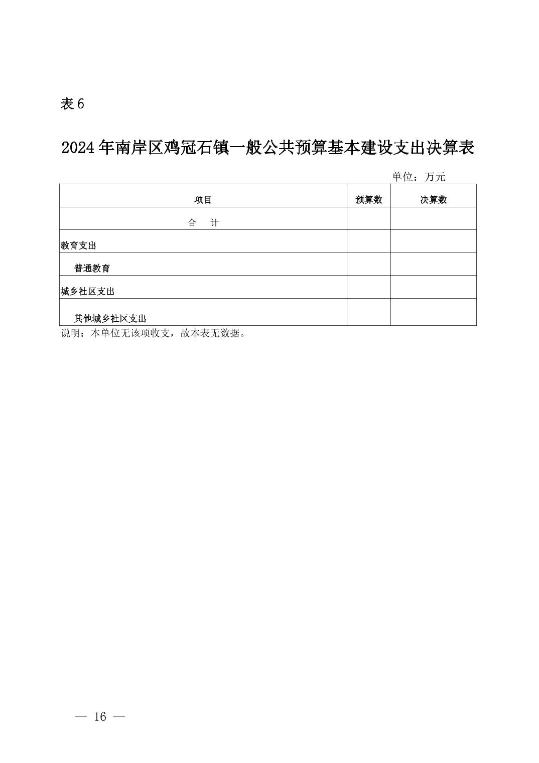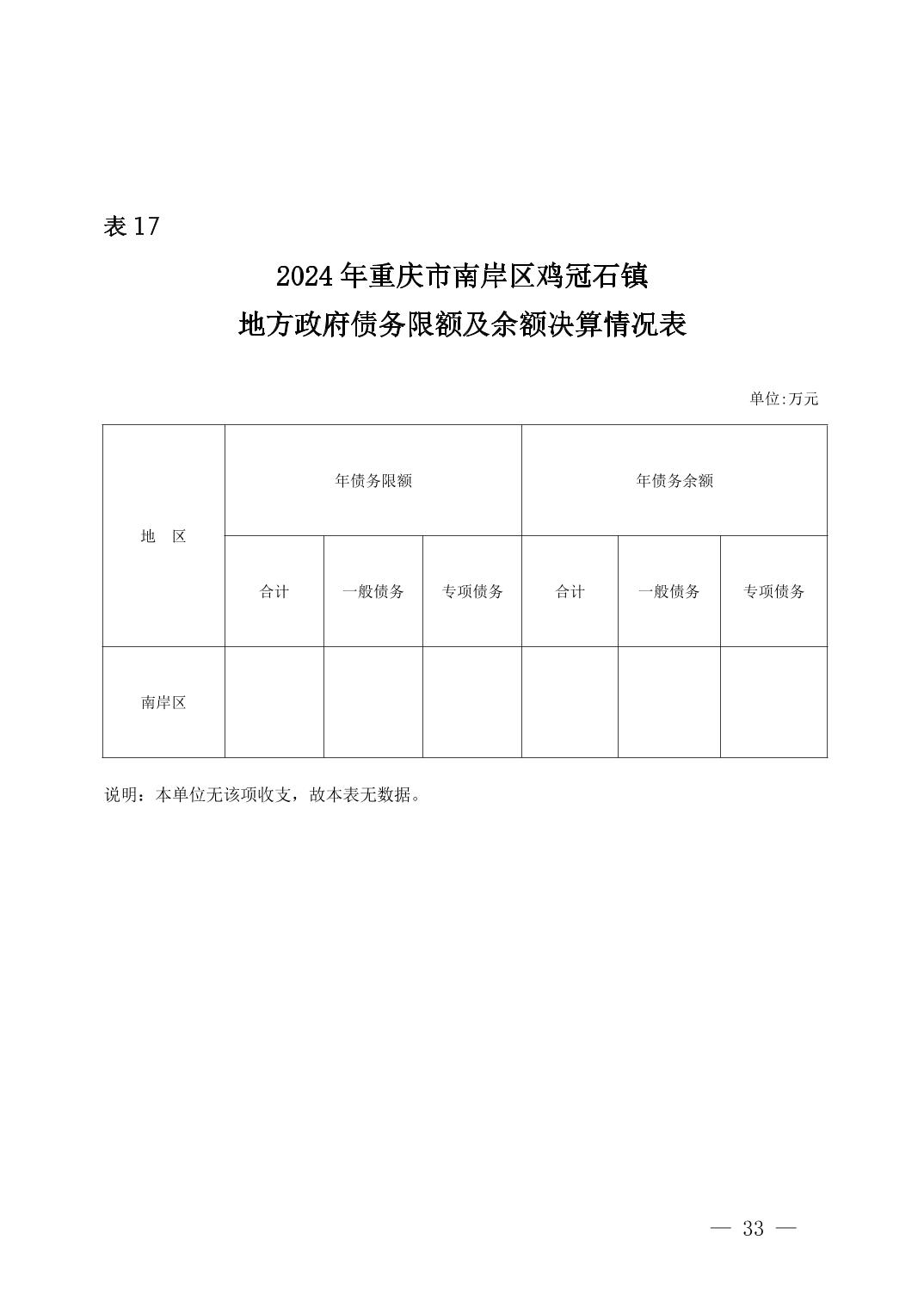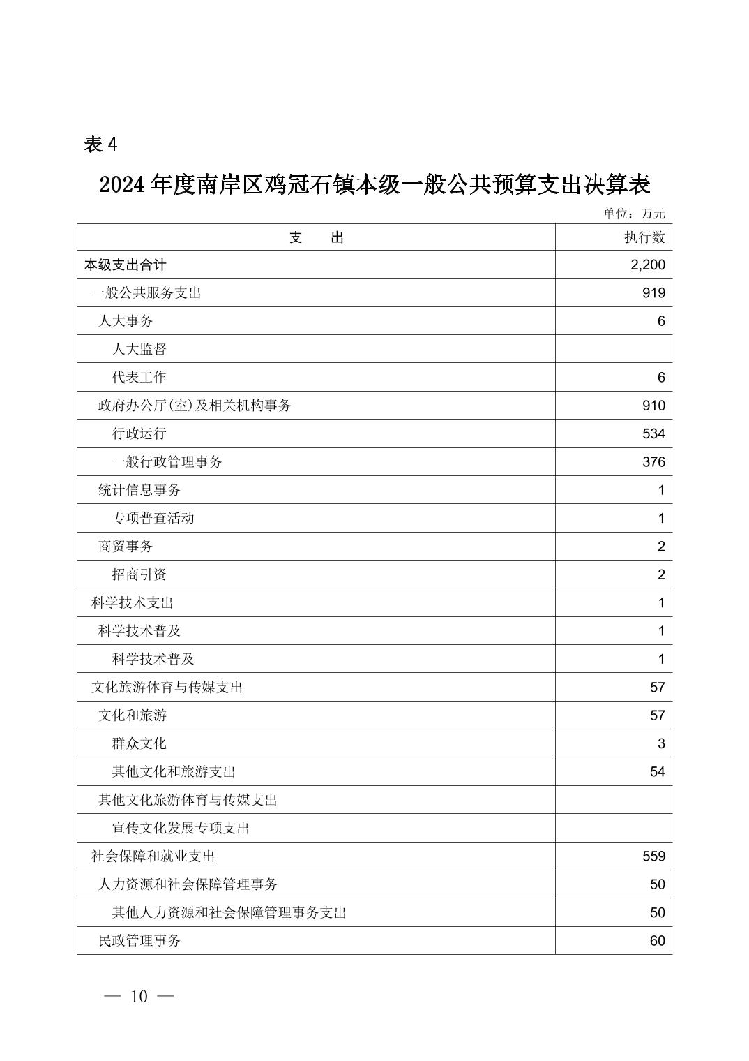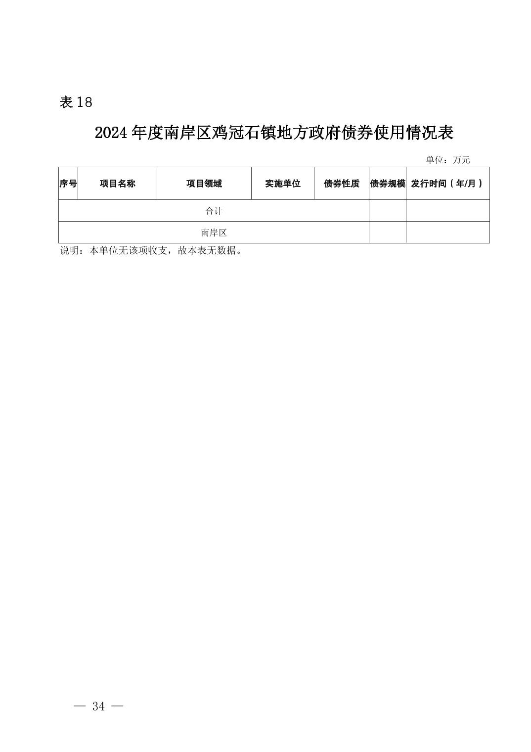 重庆市南岸区鸡冠石镇人民政府2024年财政总决算
