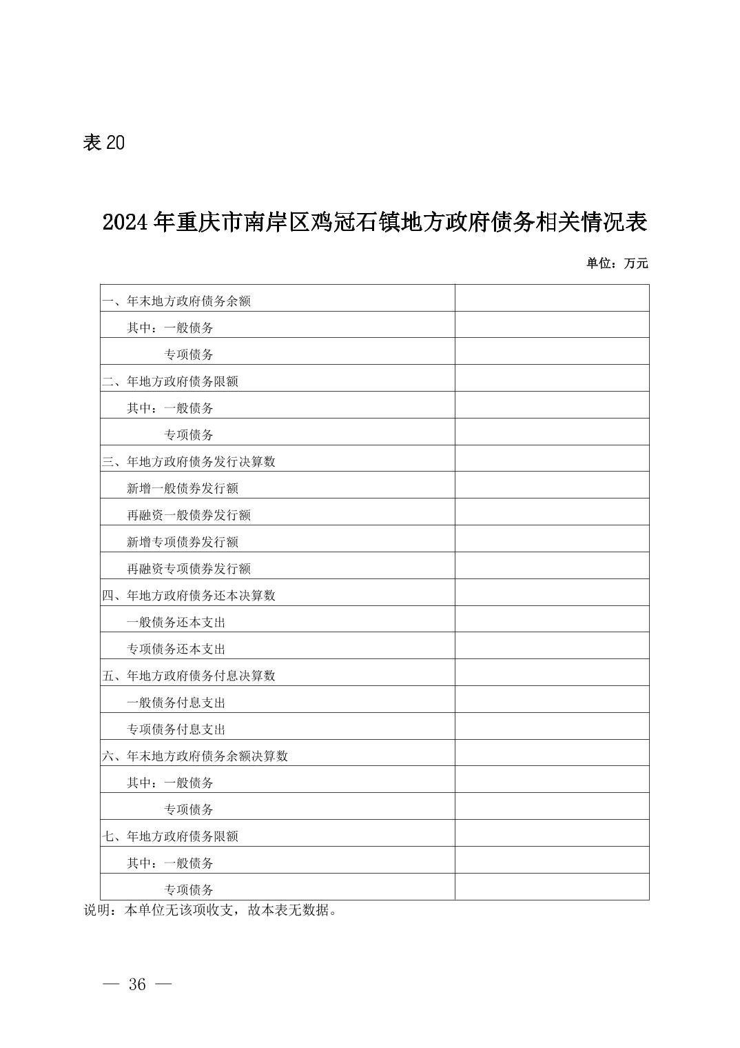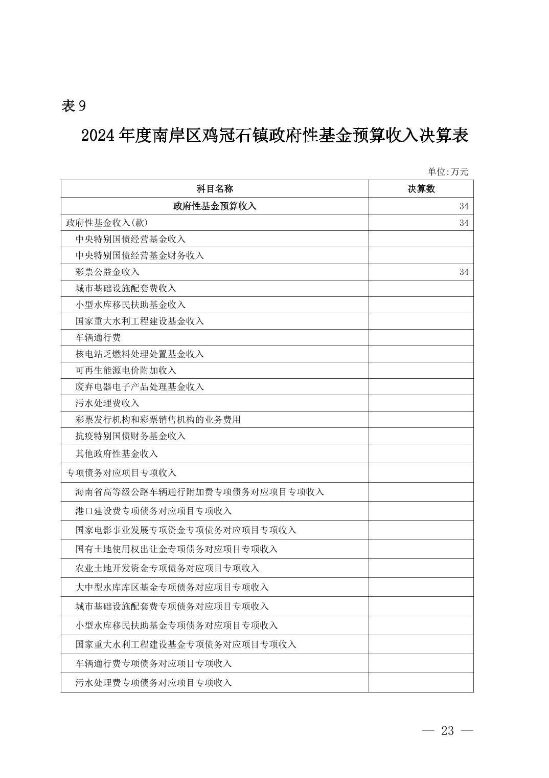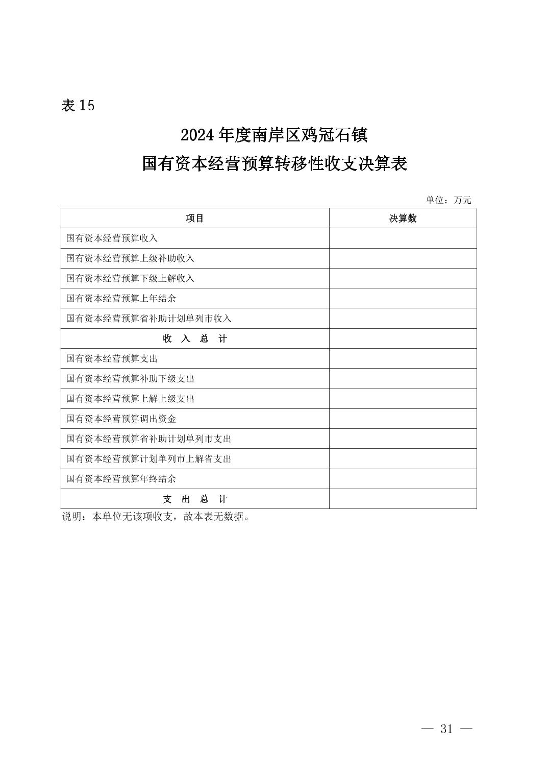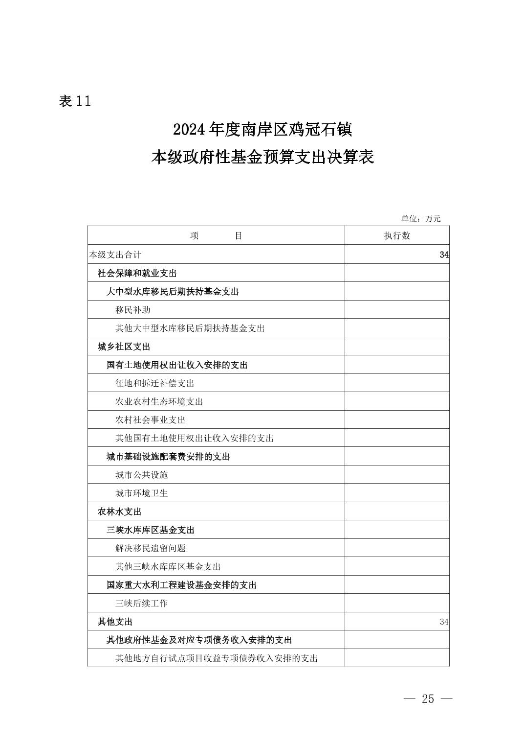重庆市南岸区鸡冠石镇人民政府2024年财政总决算