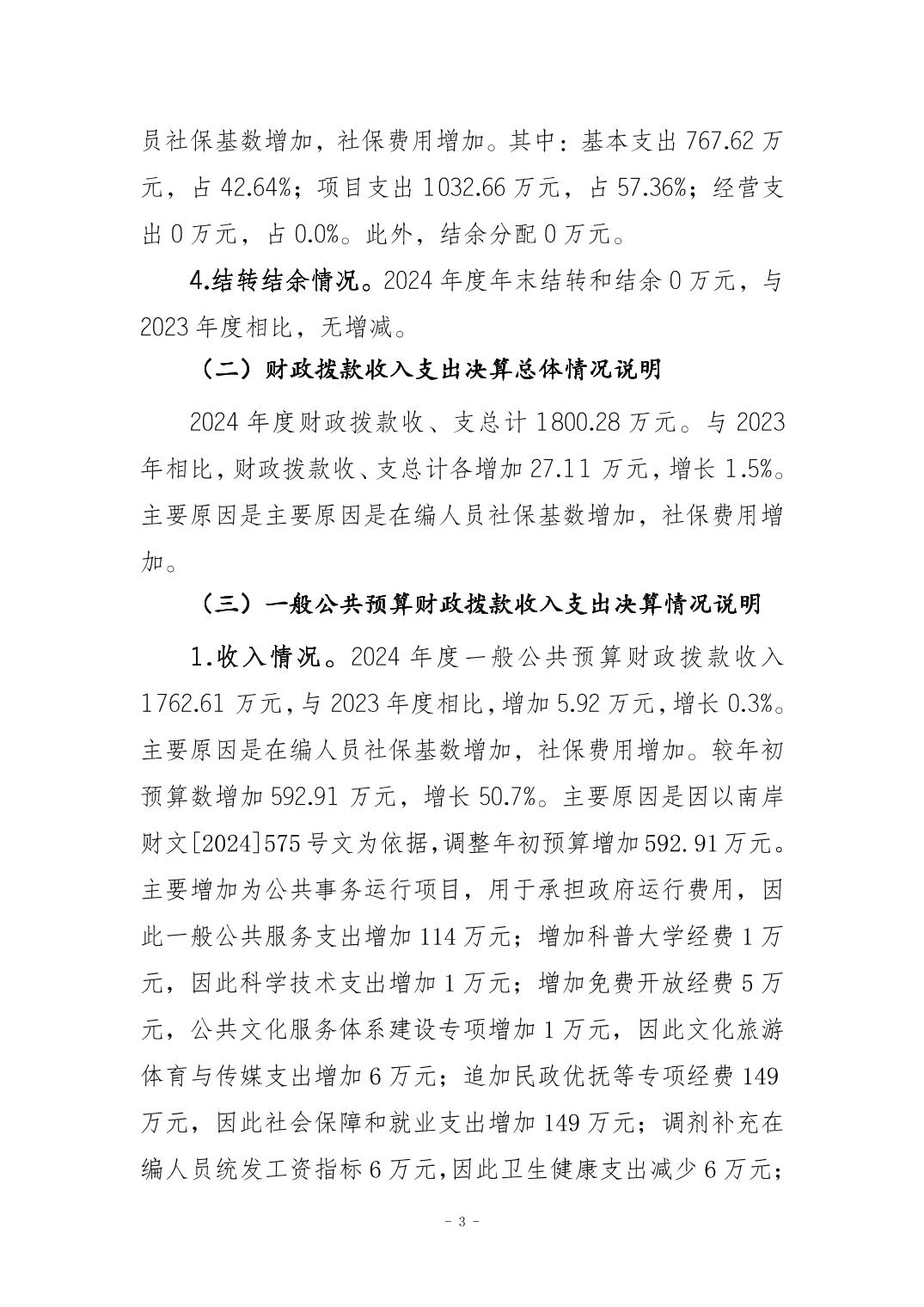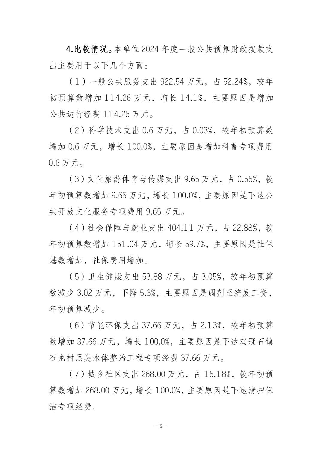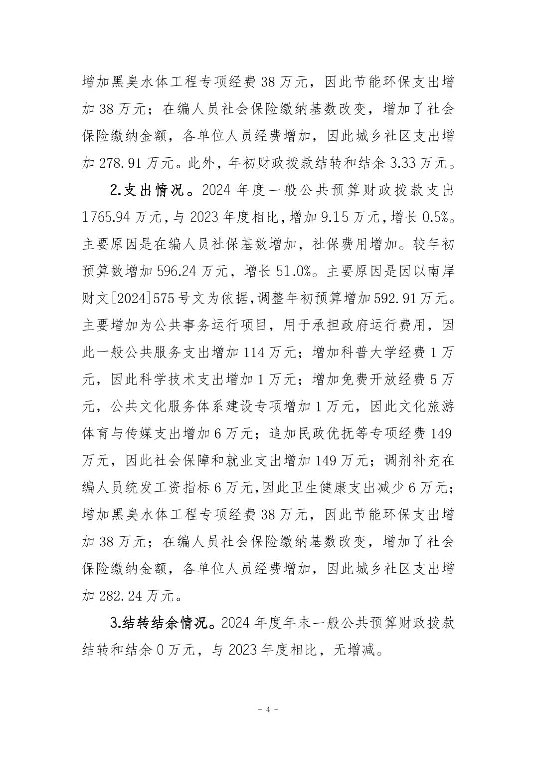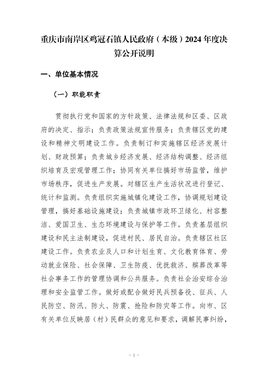 重庆市南岸区鸡冠石镇人民政府(本级)2024年度决算公开说明