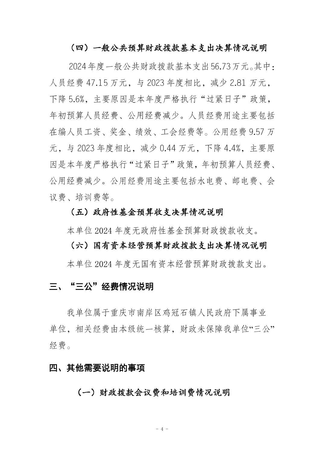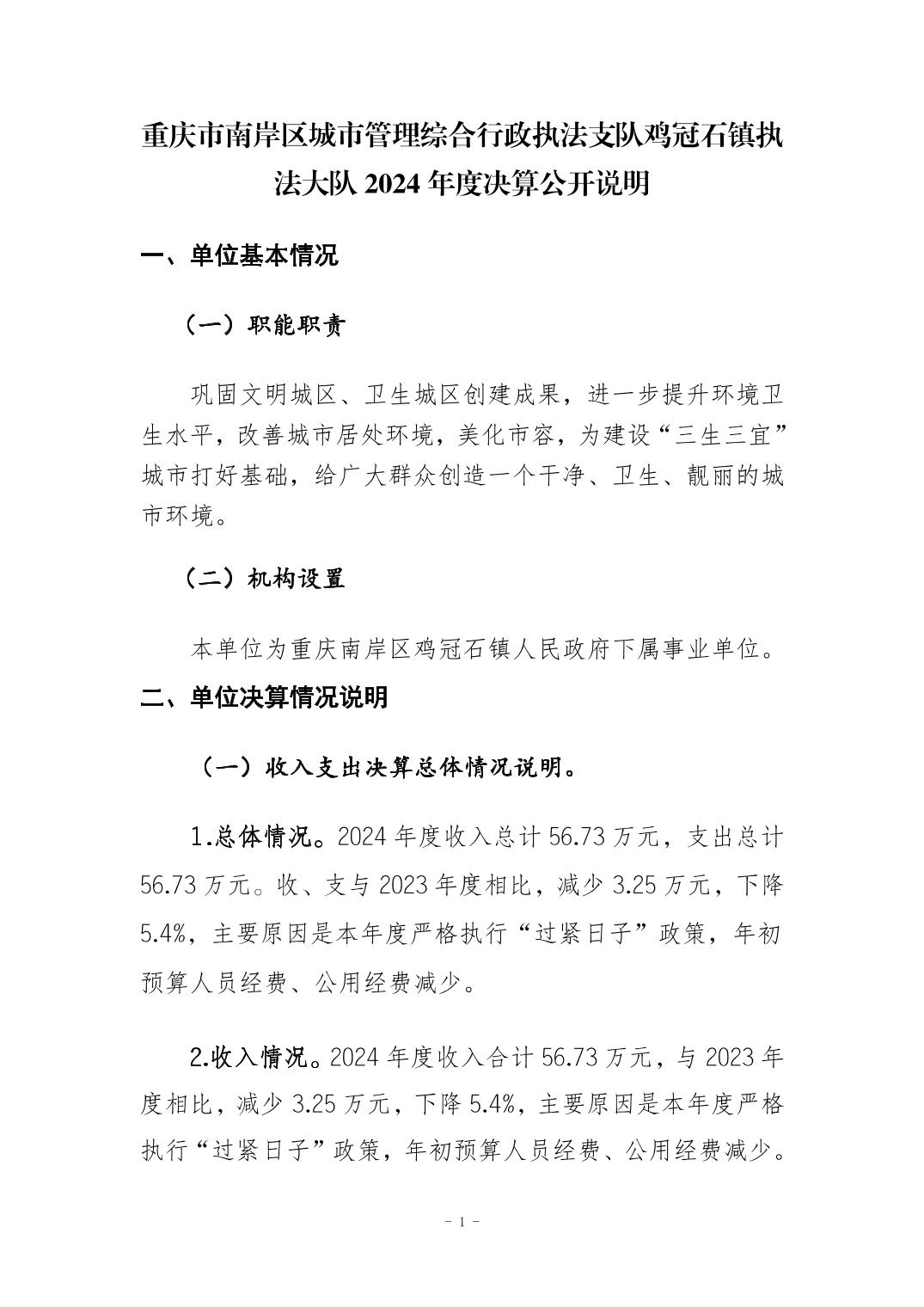 重庆市南岸区城市管理综合行政执法支队鸡冠石镇执法大队2024年度决算公开说明