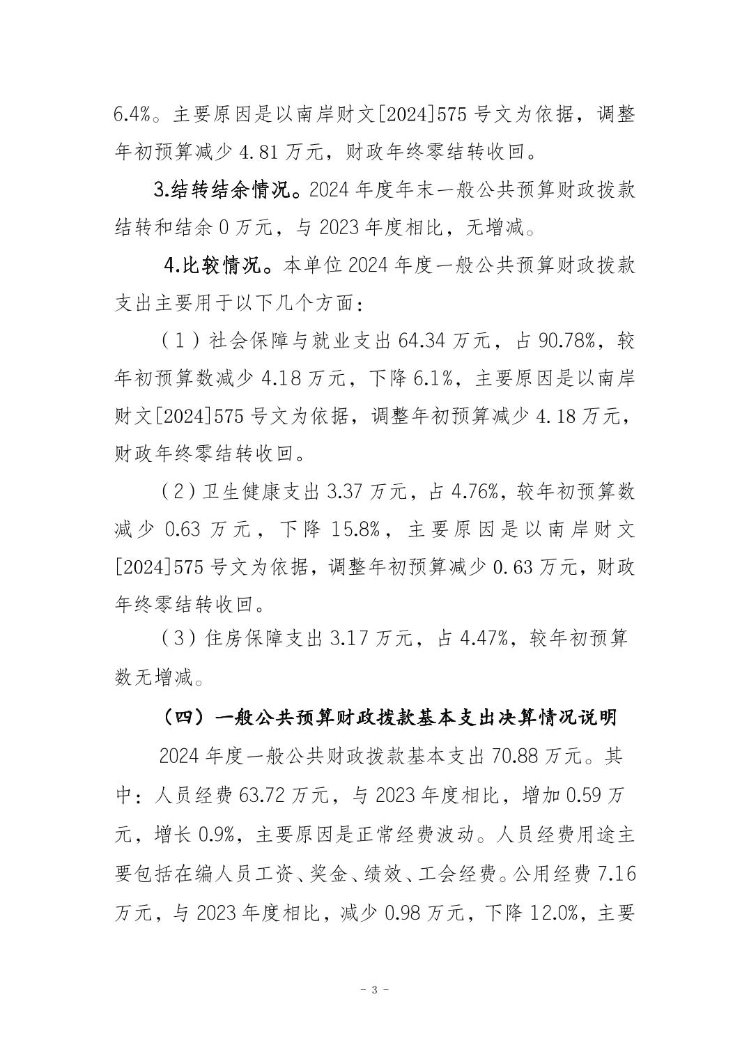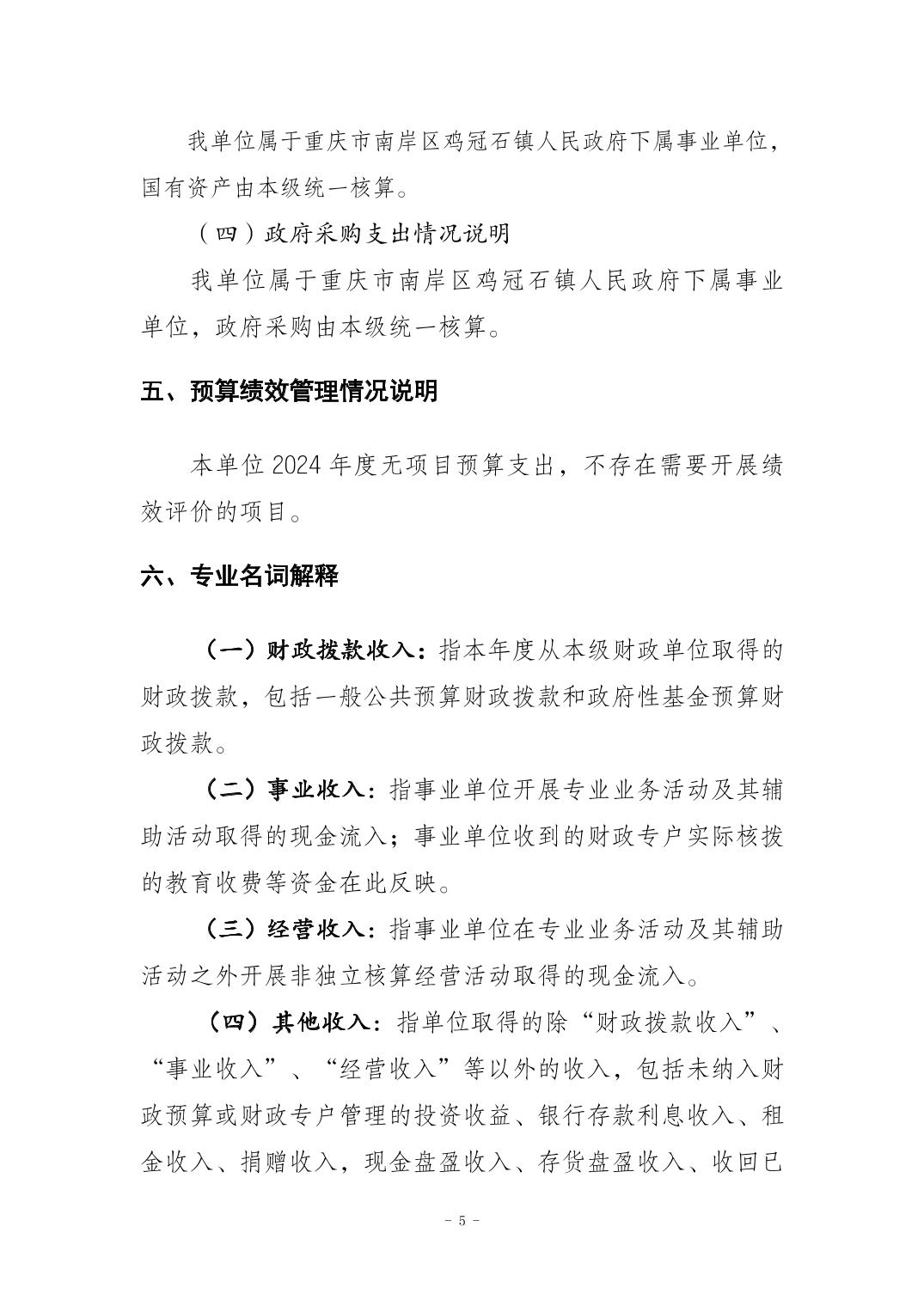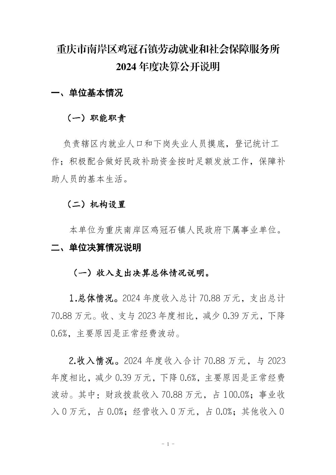重庆市南岸区鸡冠石镇劳动就业和社会保障服务所2024年度决算公开说明