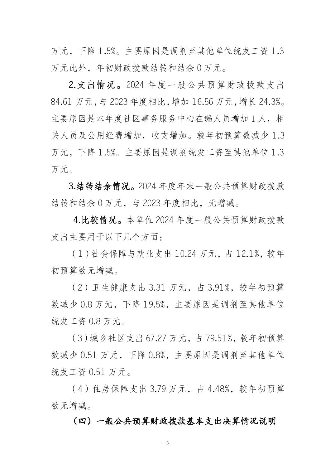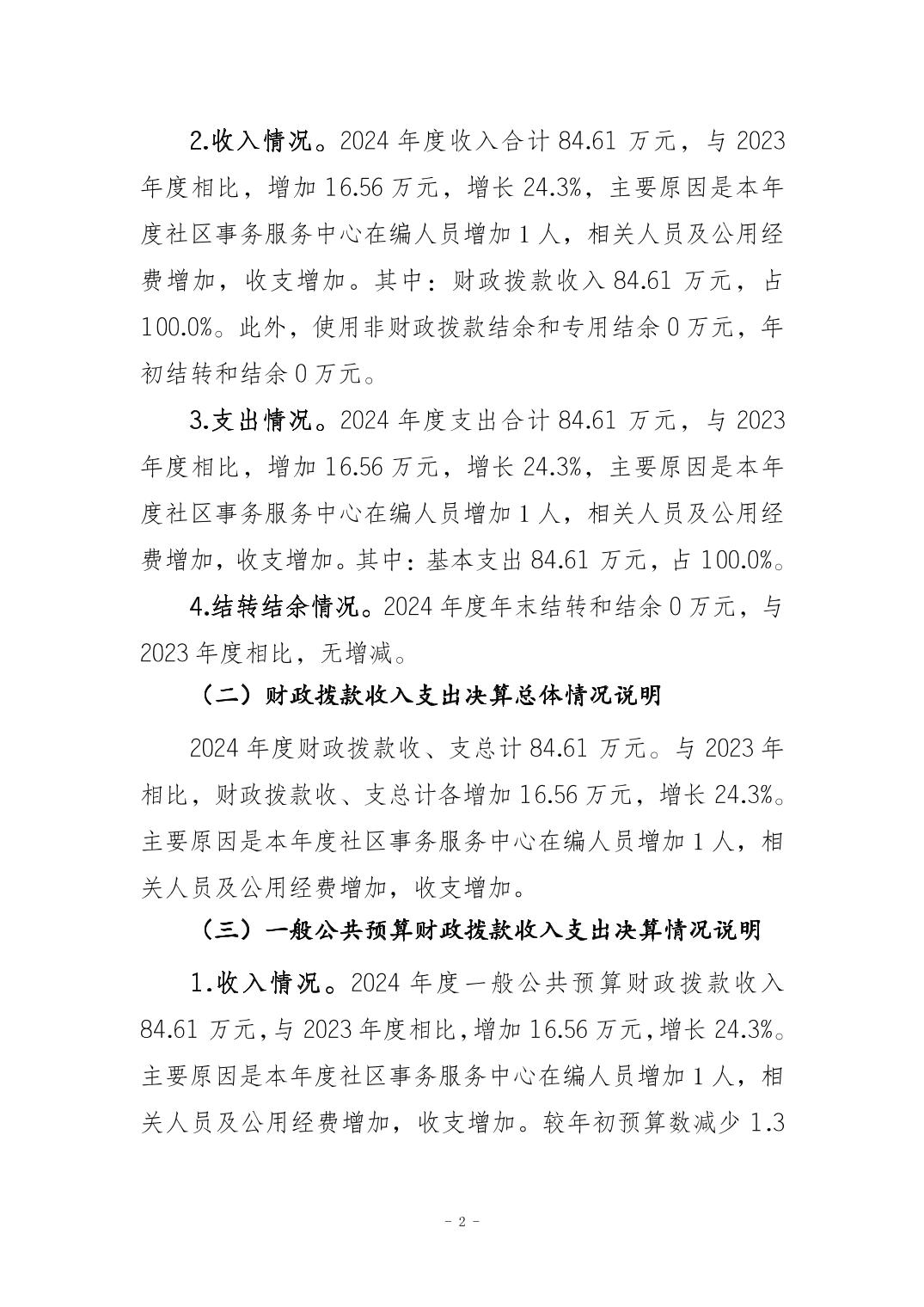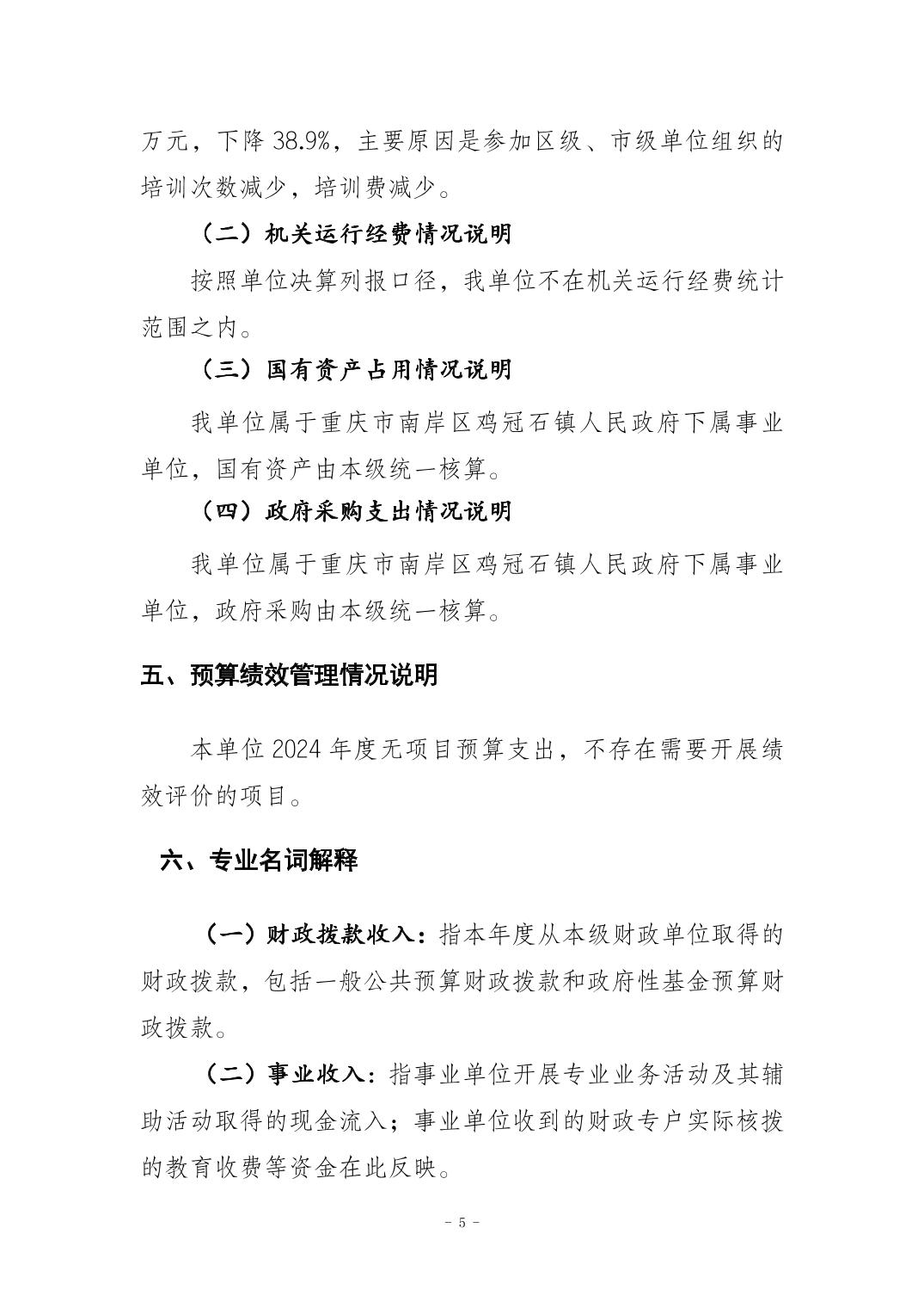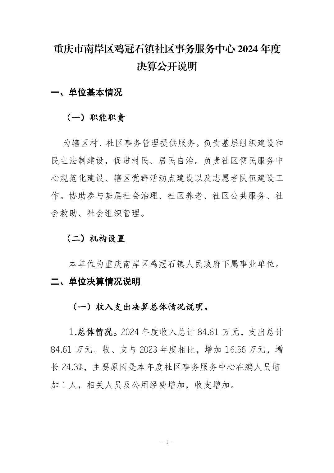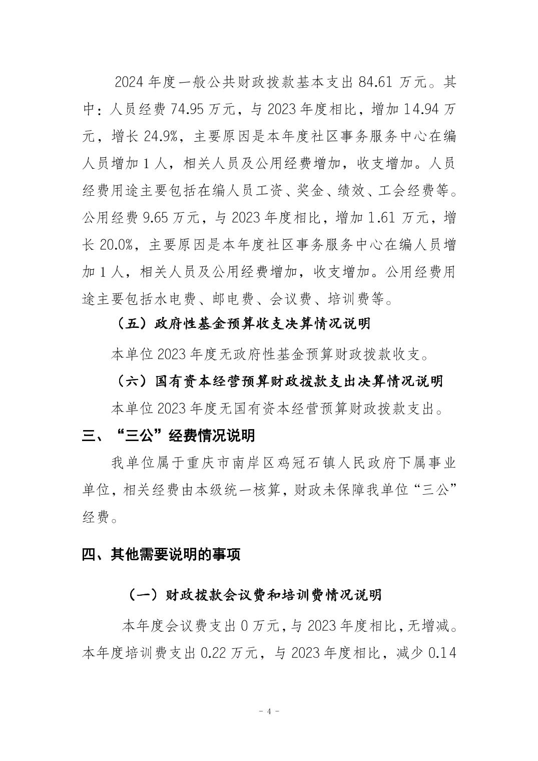重庆市南岸区鸡冠石镇社区事务服务中心2024年度决算公开说明