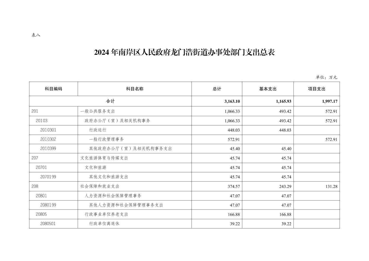 重庆市南岸区人民政府龙门浩街道办事处2024年部门预算情况说明