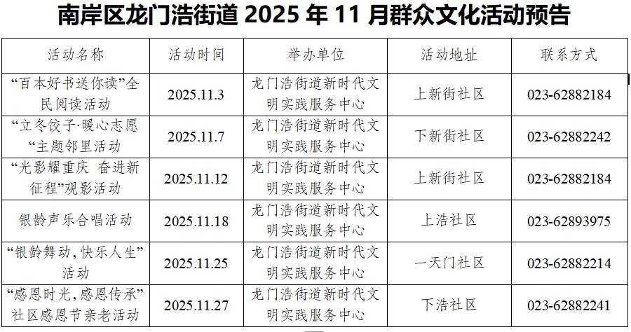 龙门浩街道2025年11月群众文化活动预告