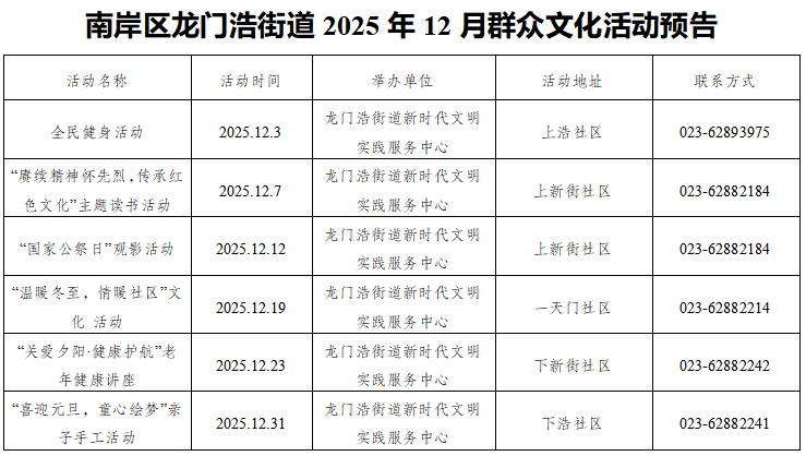 龙门浩街道>政务公开>政府信息公开目录>基层政务公开>公共文化服务>活动信息