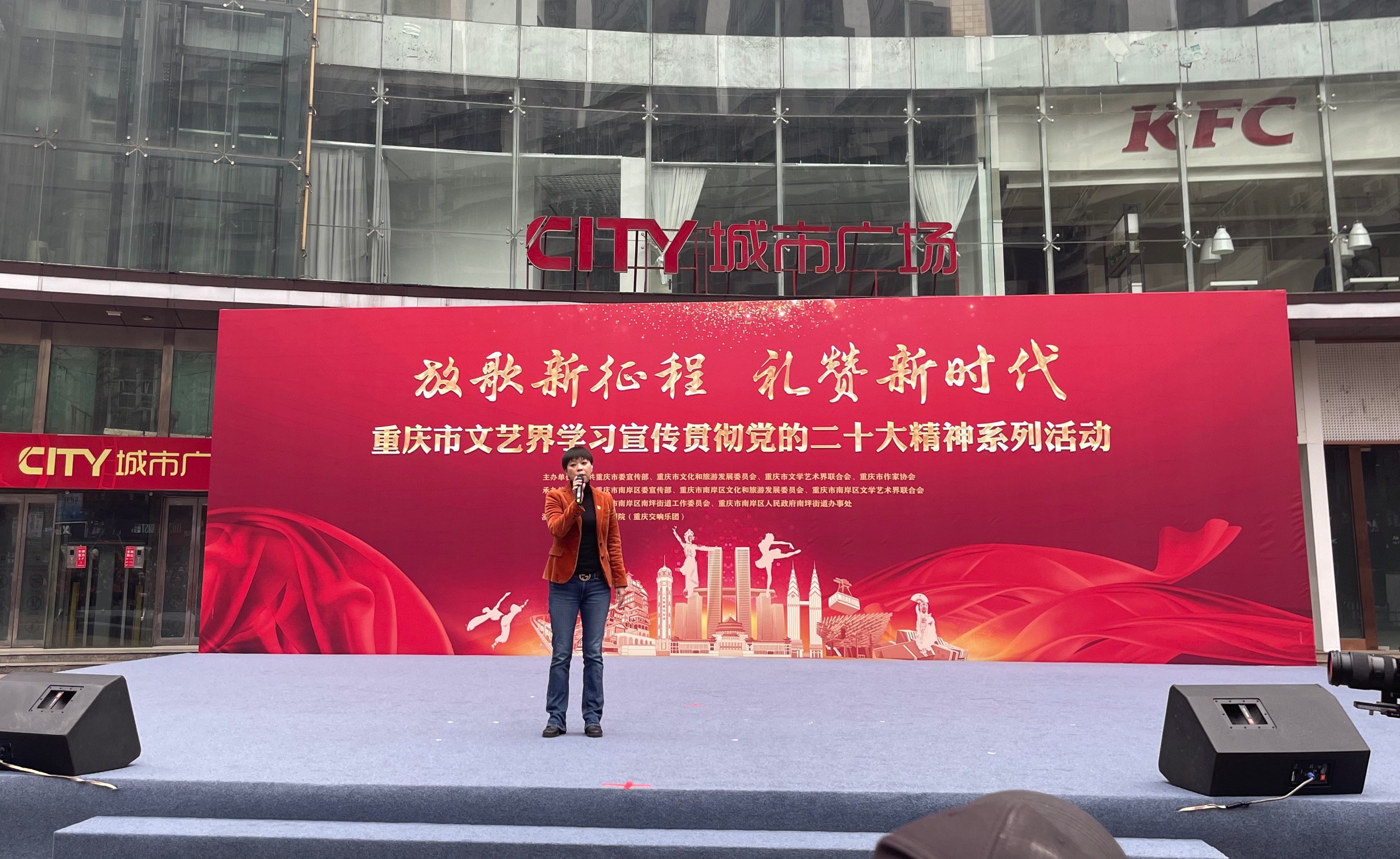 3月2日,由市委宣传部、市文化旅游委、市文联、市作协主办,区委宣传部、区文化旅游委、区文联、南坪街道承办的“放歌新征程·礼赞新时代”党的二十大精神文艺宣传活动在南坪街道城市广场举行。
