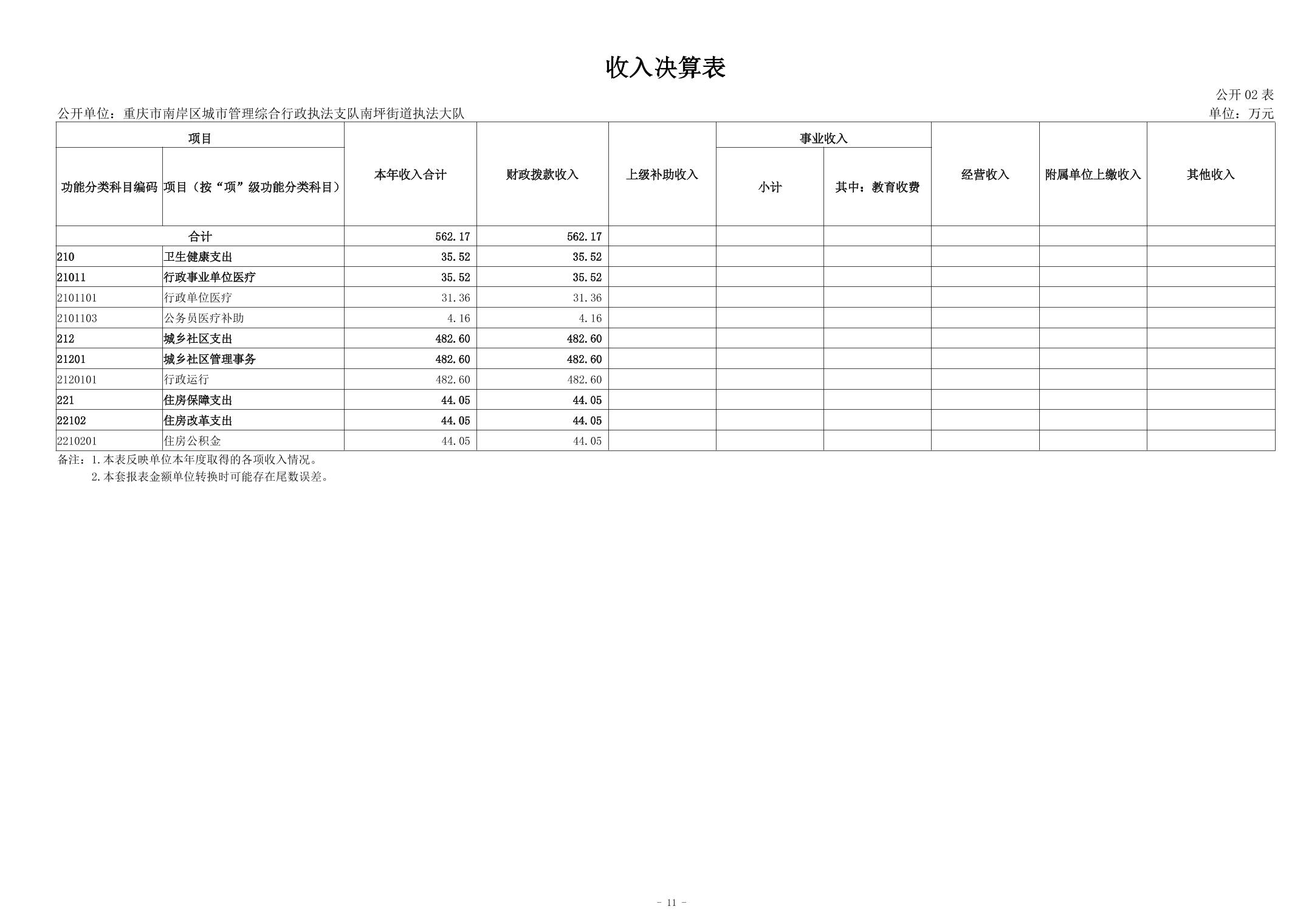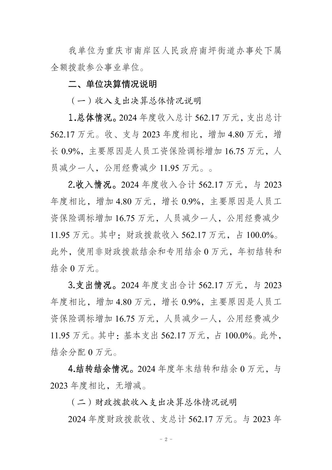 重庆市南岸区城市管理综合行政执法支队南坪街道执法大队2024年度决算公开说明