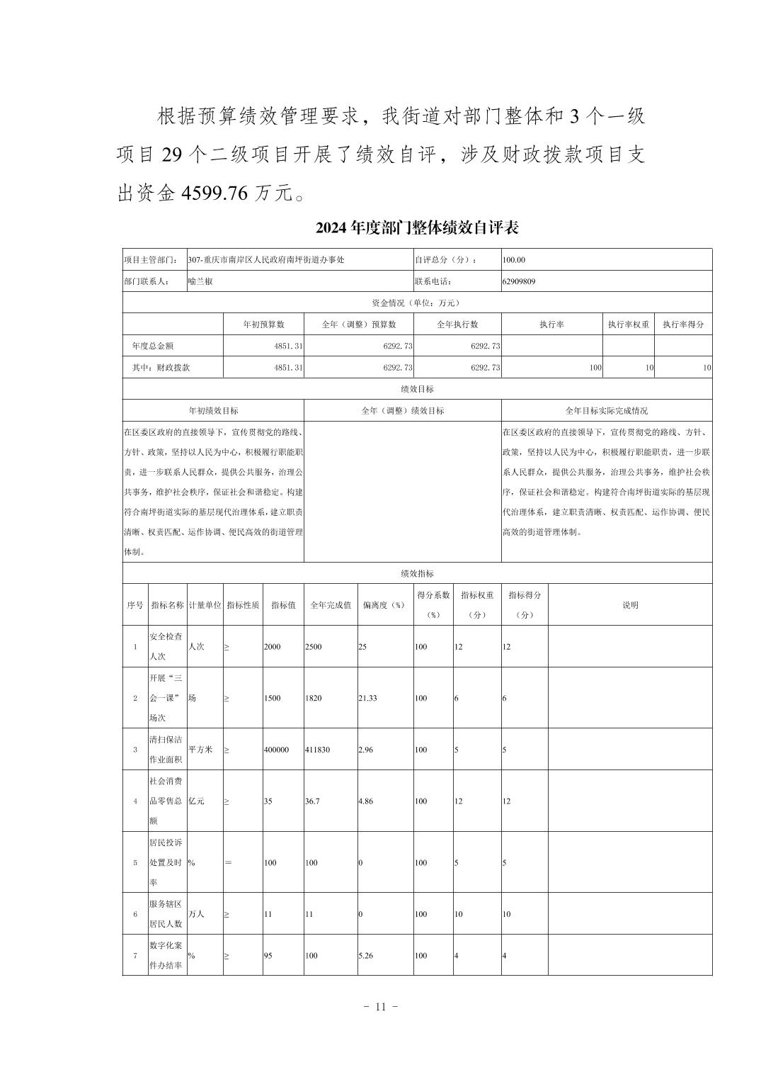 重庆市南岸区人民政府南坪街道办事处2024年度决算公开说明