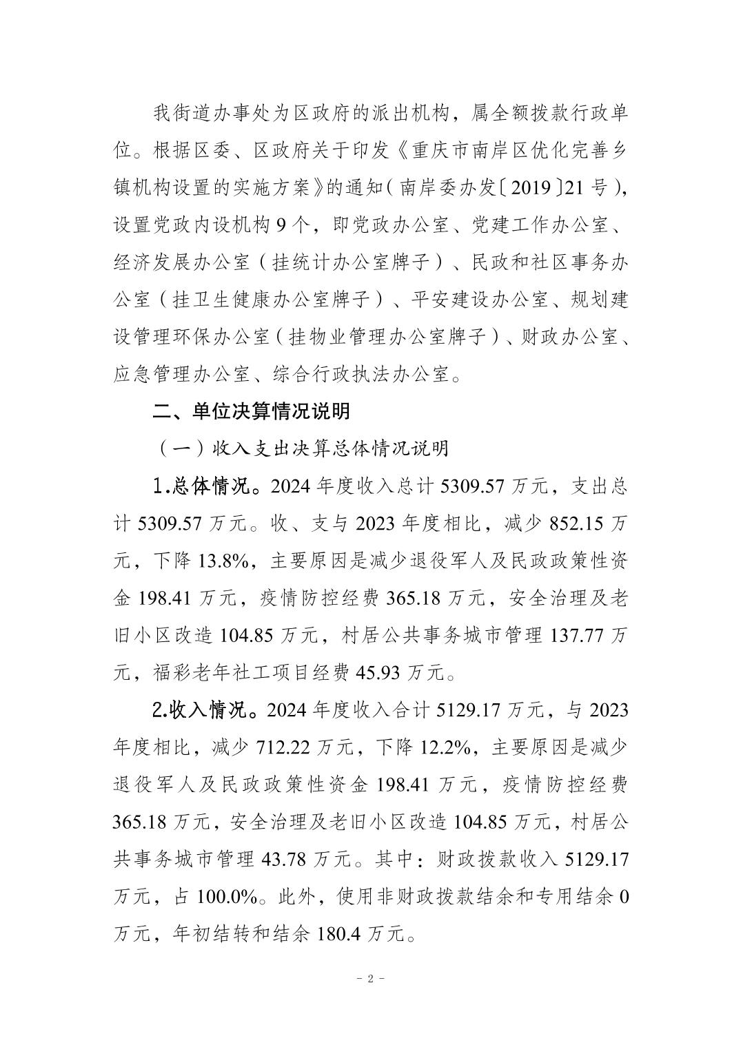 重庆市南岸区人民政府南坪街道办事处(本级)2024年度决算公开说明