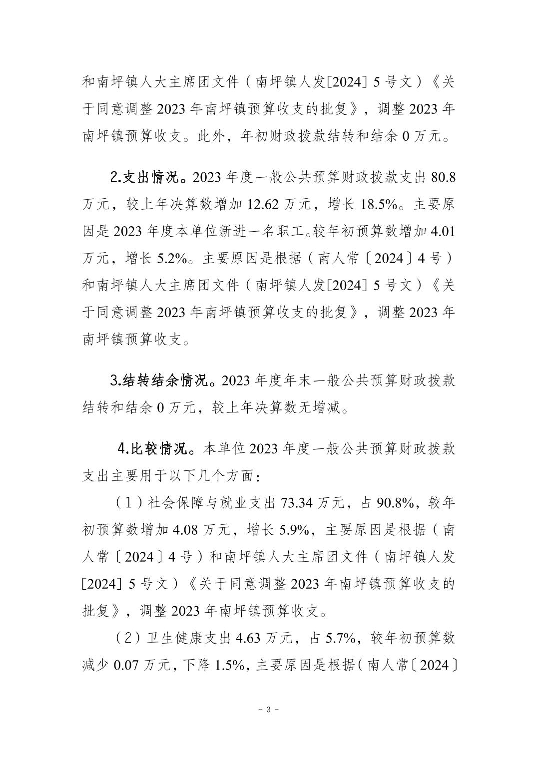 重庆市南岸区南坪镇劳动就业和社会保障服务所2023年度决算公开说明