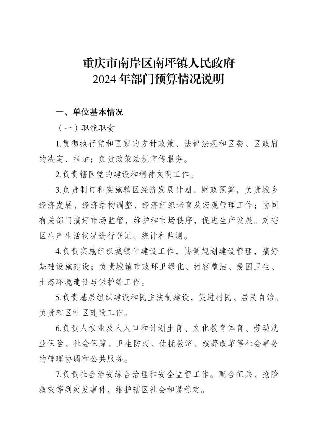 重庆市南岸区南坪镇人民政府2024年部门预算情况说明