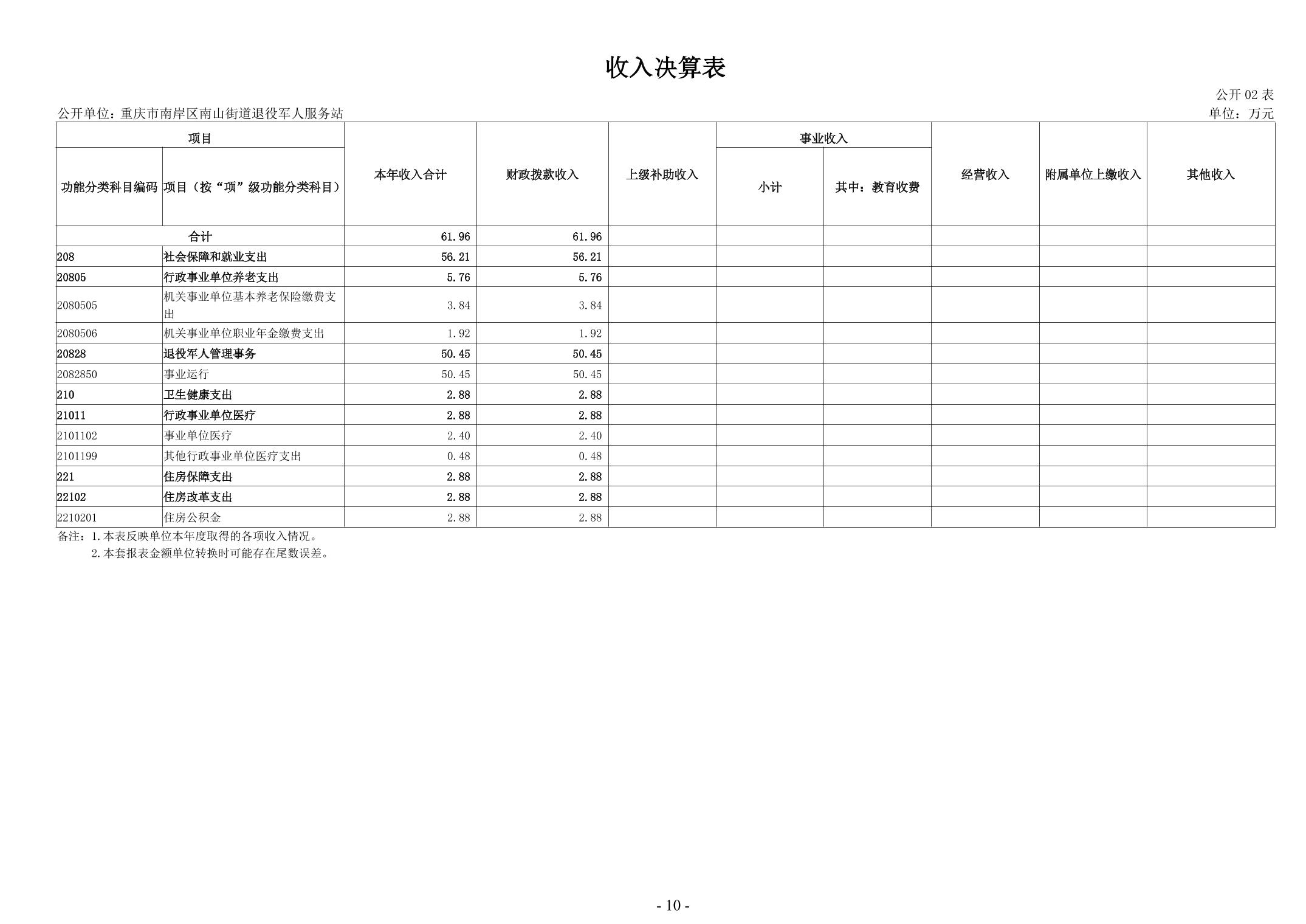 重庆市南岸区南山街道退役军人服务站2024年度决算公开说明