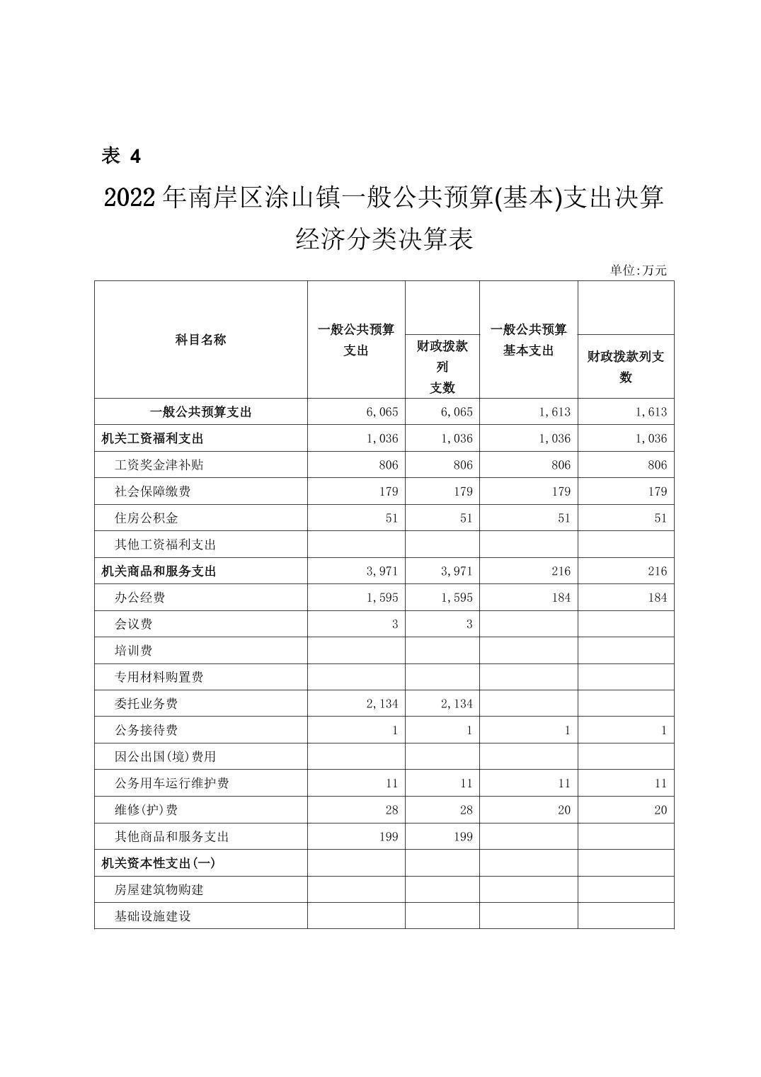 重庆市南岸区涂山镇人民政府2022年财政总决算