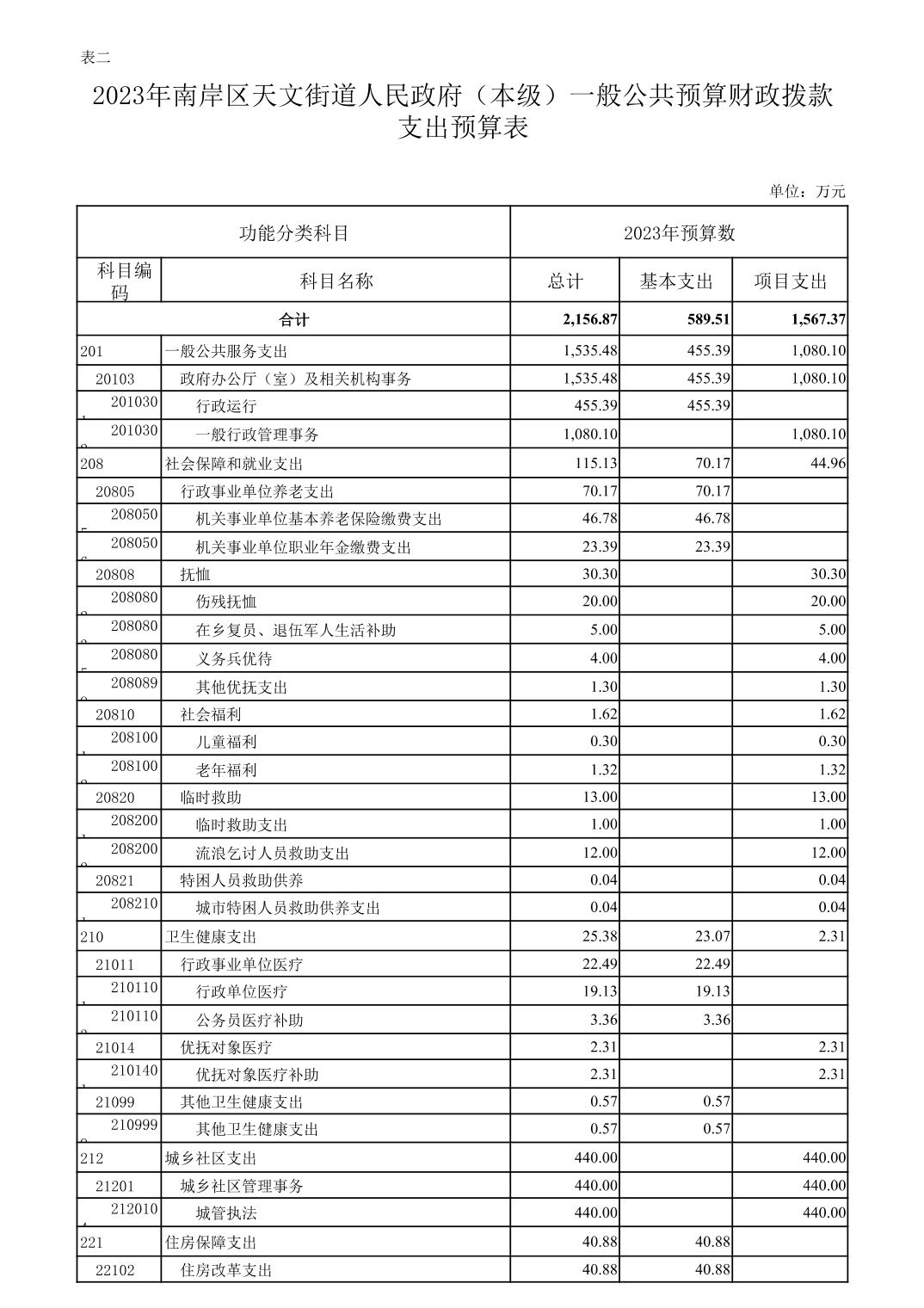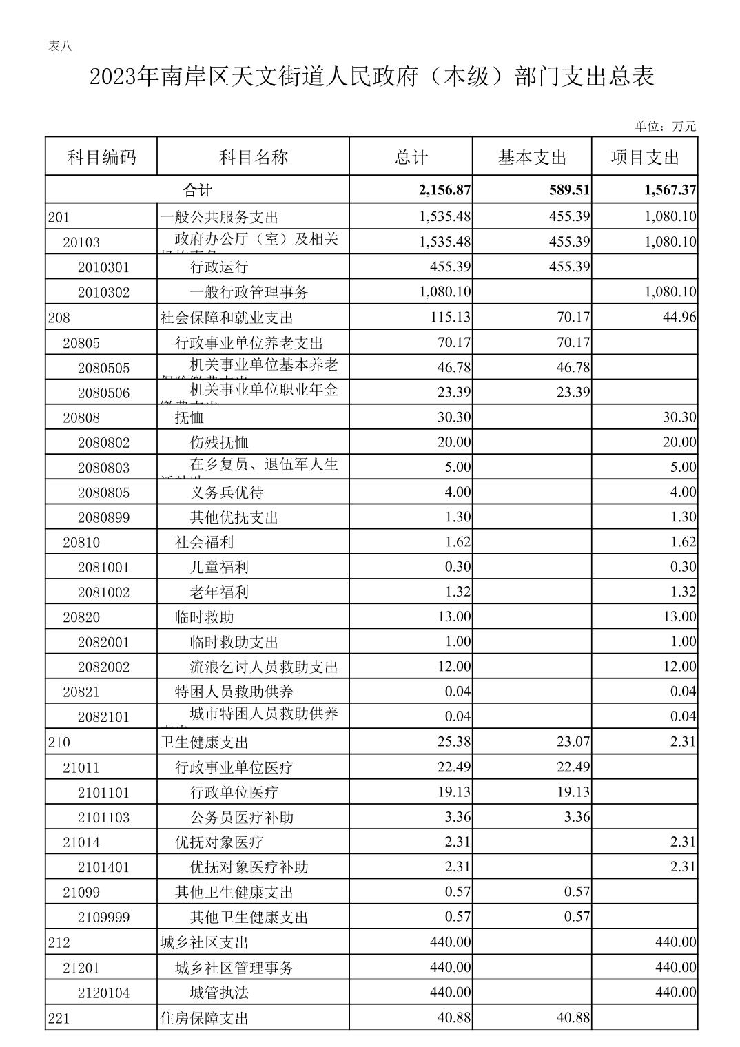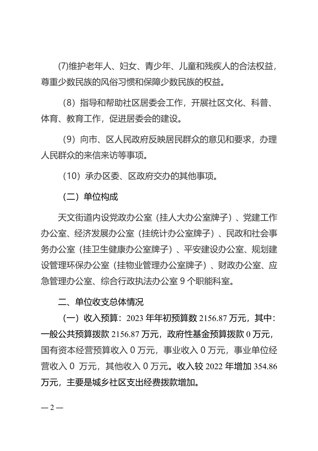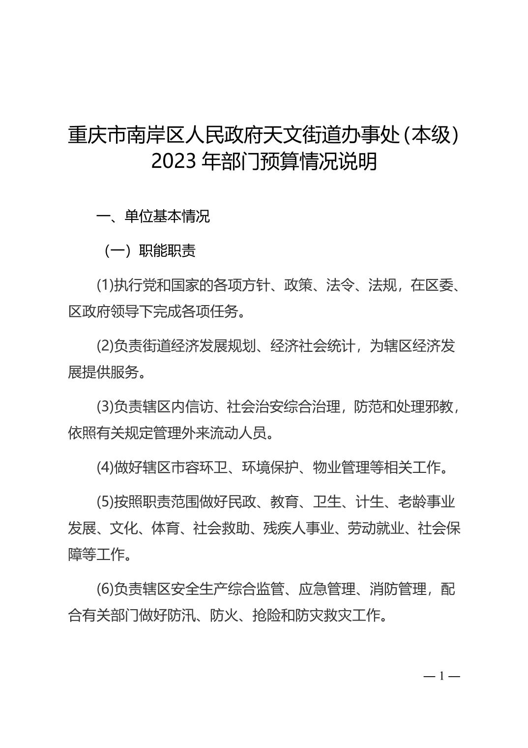 重庆市南岸区人民政府天文街道办事处(本级)2023年部门预算情况说明