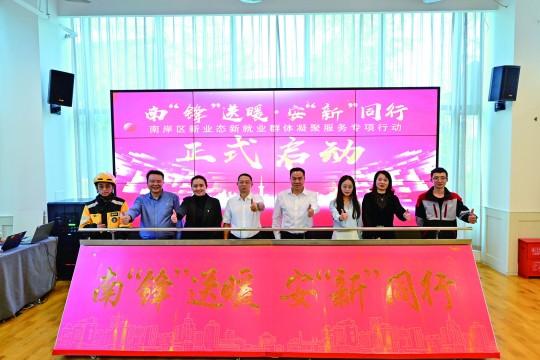 为让广大新业态企业和新就业群体在南岸立得住脚、安得下心、圆得了梦,10月22日,由中共南岸区委组织部、中共南岸区委社会工作部主办,重庆软件园承办的南“锋”送暖·安“新”同行南岸区新业态新就业群体凝聚服务专项行动正式启动,进一步团结凝聚全区广大新业态企业和新就业群体,促进行业规范健康持续发展,积极推动新业态新就业群体融入城市治理。
