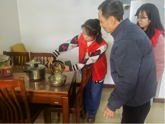 活动中,“暖心汤”送关怀行动成为本次志愿服务的暖心主线。镇党委领导干部、党员志愿者与社区网格员组成7支服务小队,精准对接社区独居、高龄、行动不便的孤寡老人群体,上门为20位老人送去精心熬制的营养汤品。每到一户,志愿者们都与老人促膝交谈,细致询问身体状况与生活需求,把党组织的关怀化作贴心的话语、暖心的行动,沁润着每位老人的心田。