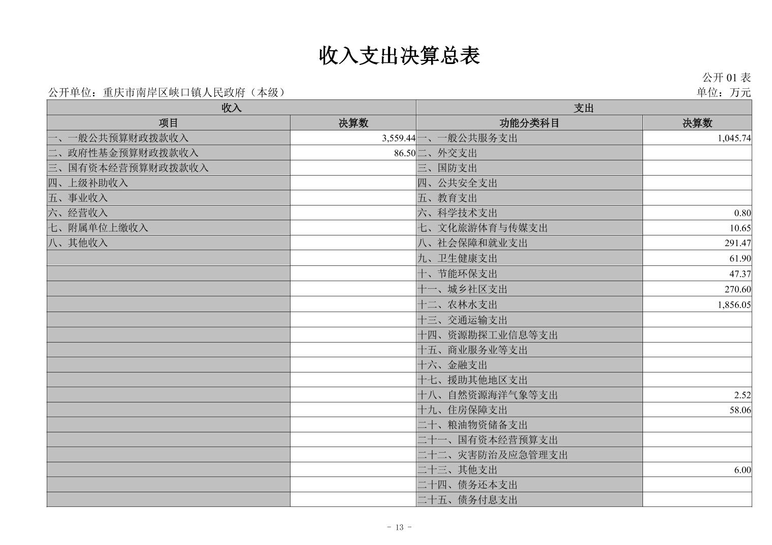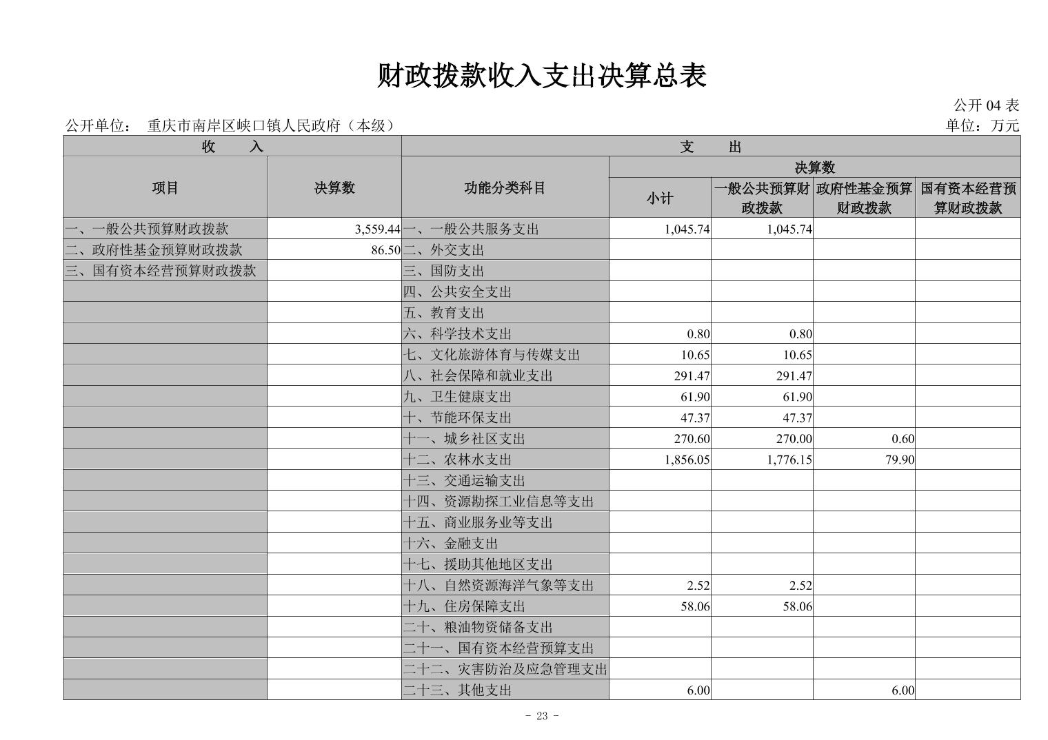峡口镇>政务公开>法定主动公开内容>预算/决算>财政决算