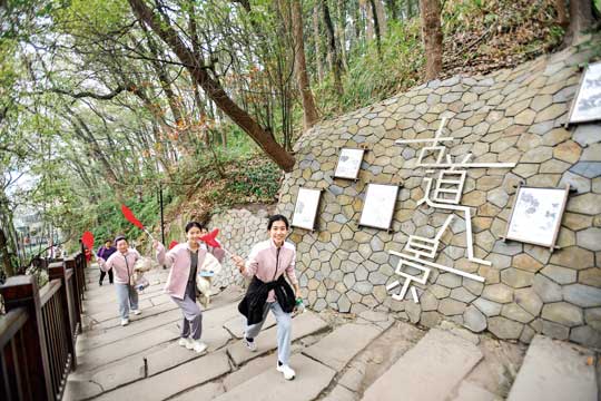 登高活动以江南体育中心为起点,途径和泓南山道、黄葛古道、黄桷垭老街,以位于南山的三毛文化广场为终点。9时许,参与者从起点陆续出发,有人健步如飞,有人缓步而行。一路上,参与者可以欣赏古道、老街等沿途美丽风景,感受南岸的历史人文变迁,在轻松的氛围中达到锻炼目的。
