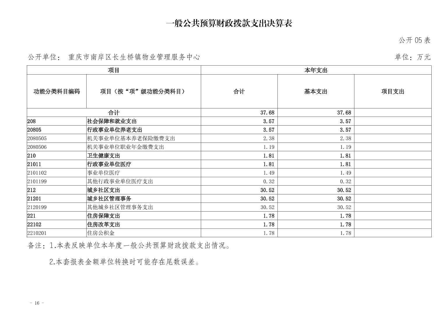 重庆市南岸区长生桥镇物业管理服务中心2023年度决算公开说明