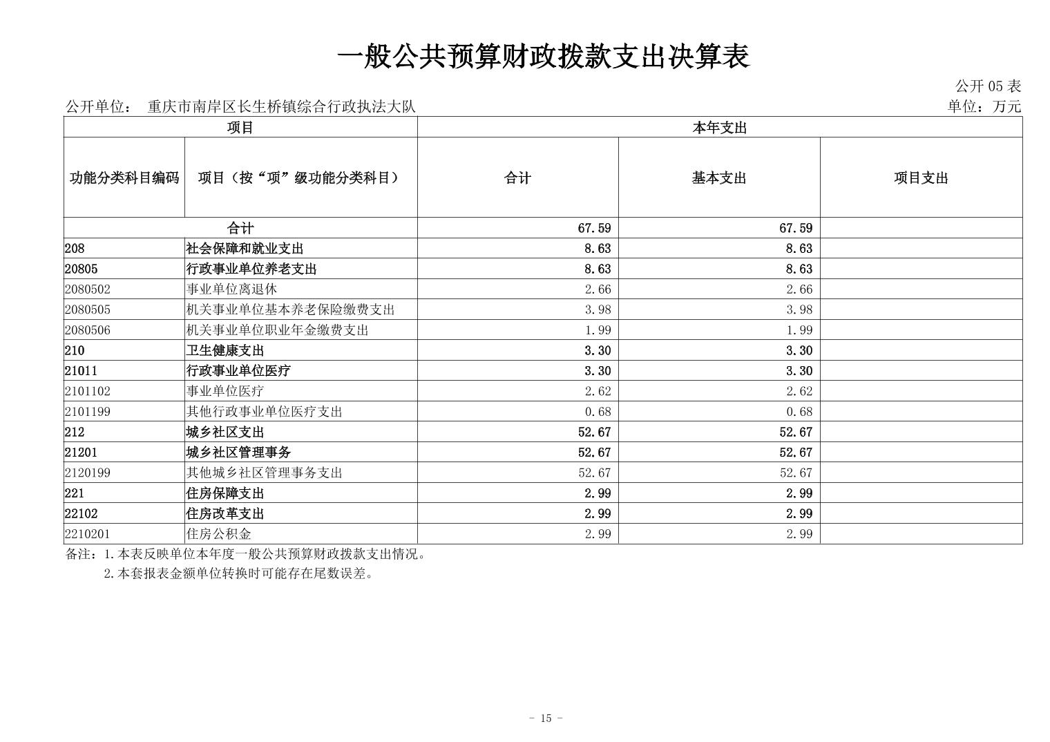 重庆市南岸区长生桥镇综合行政执法大队2024年度决算公开说明
