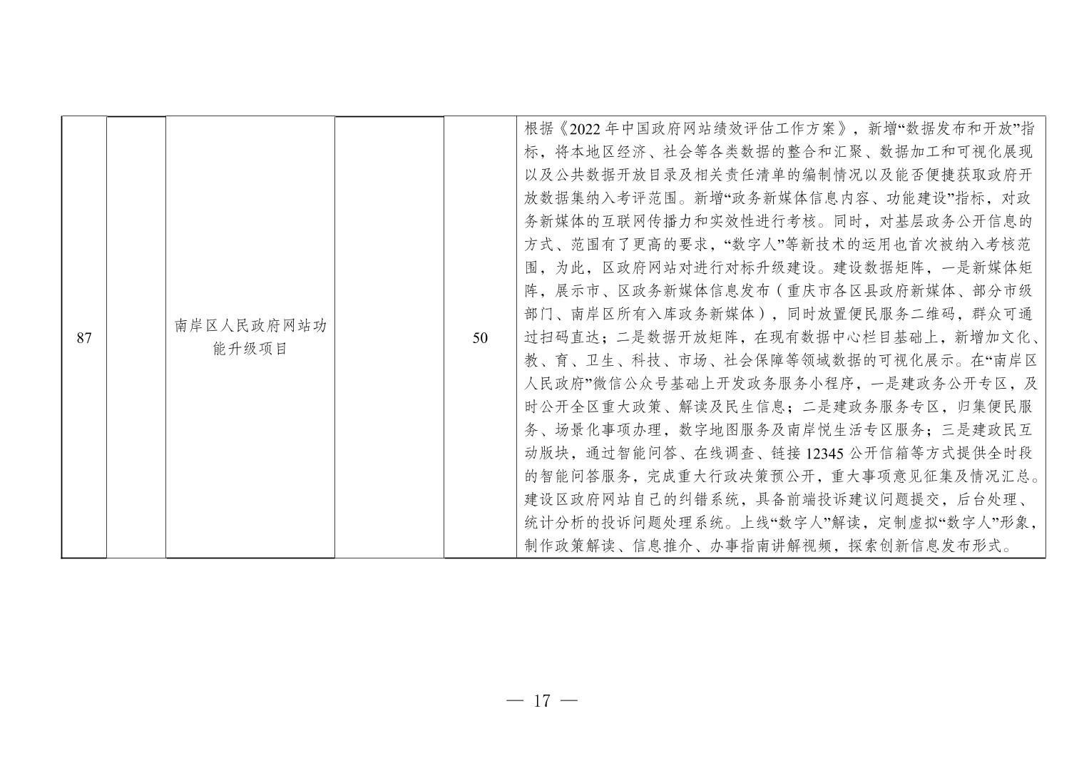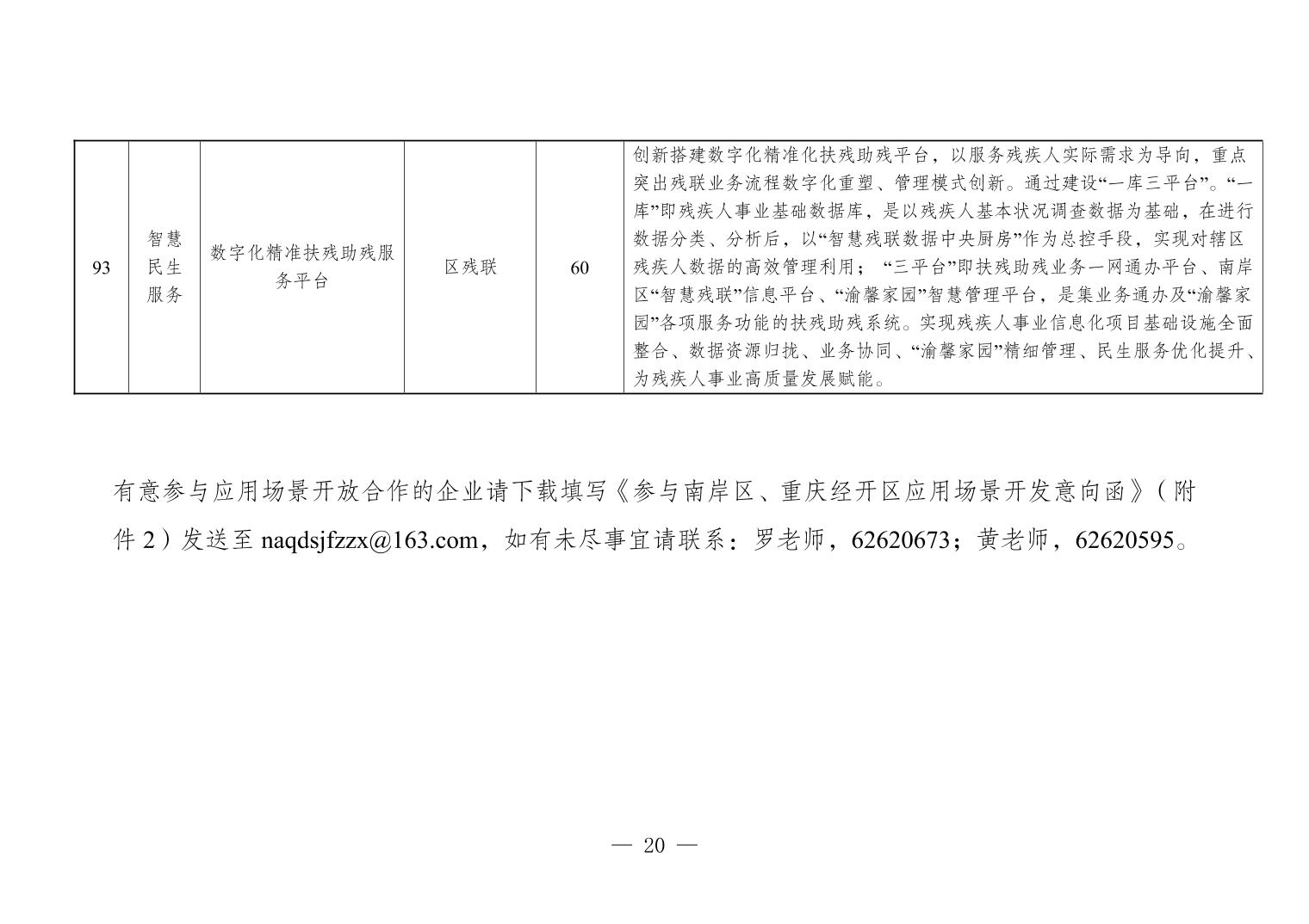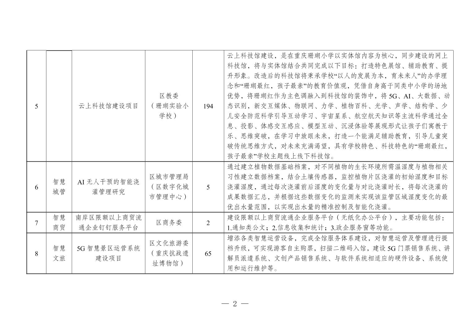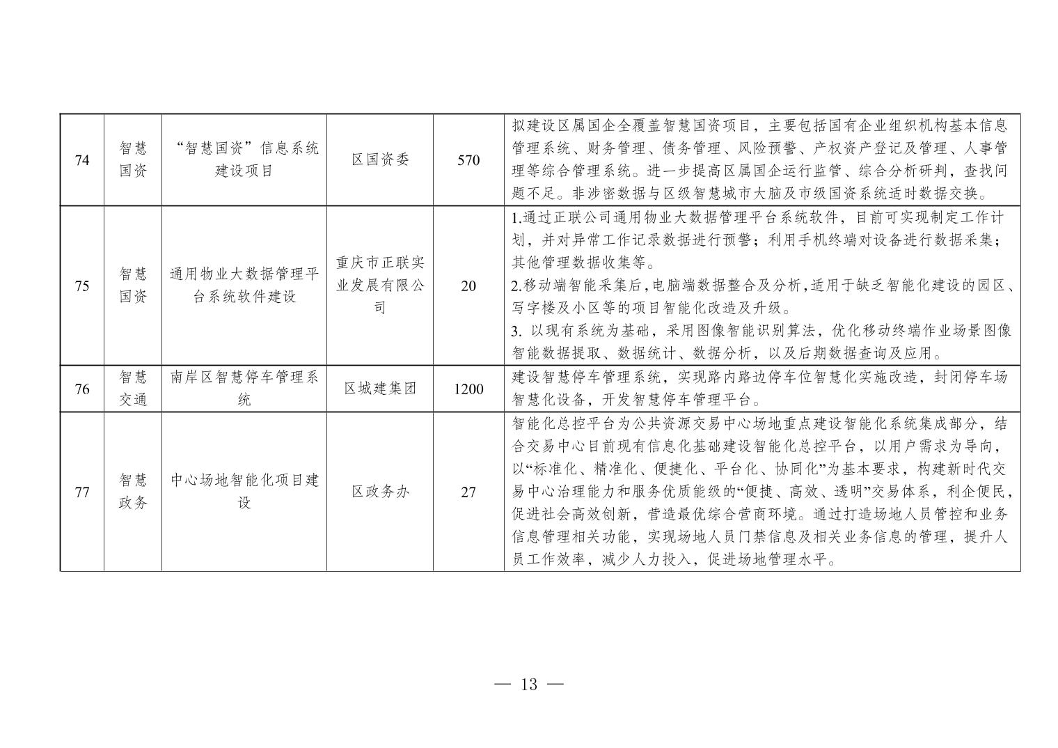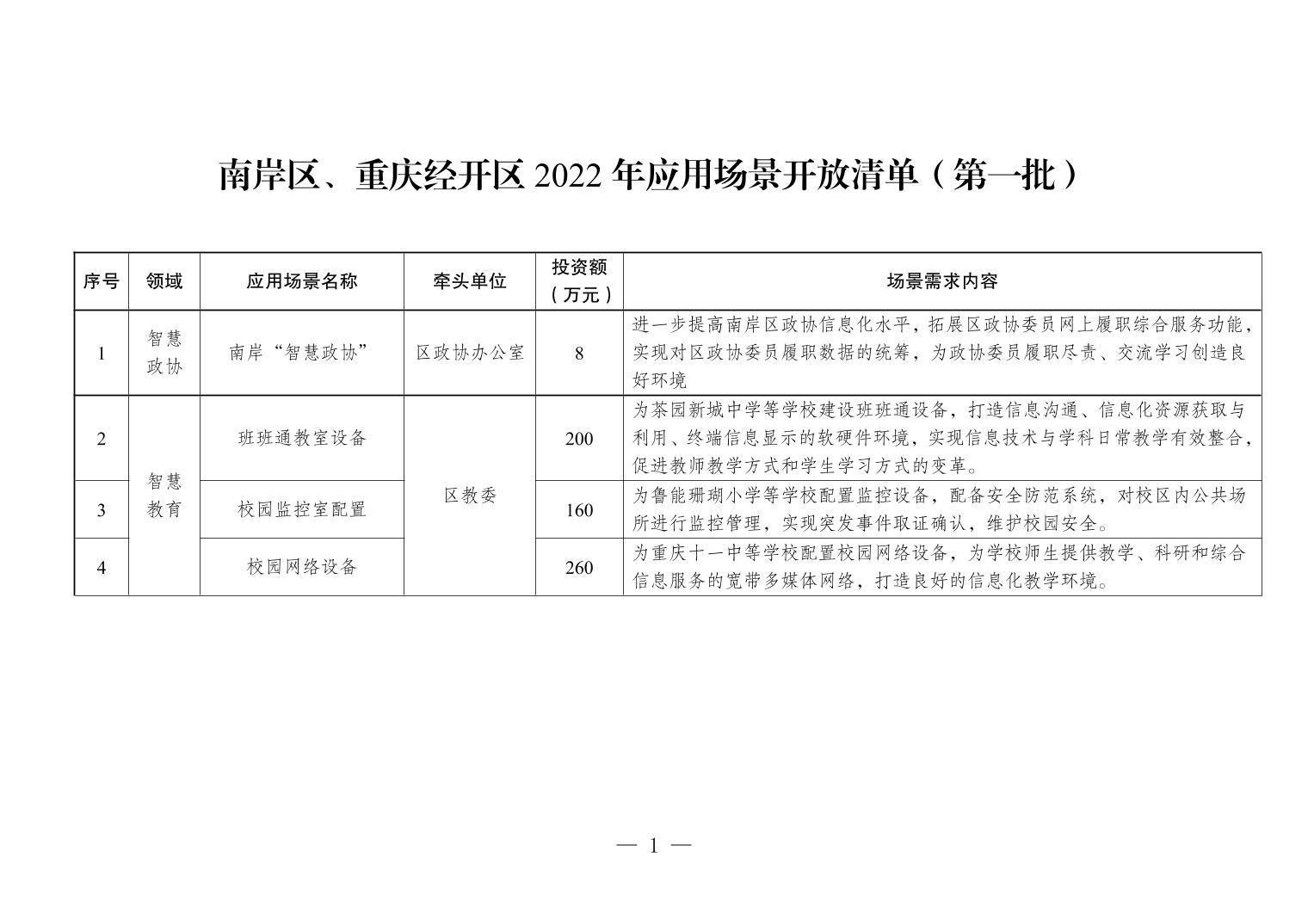 南岸区、重庆经开区2022年应用场景开放清单(第一批)