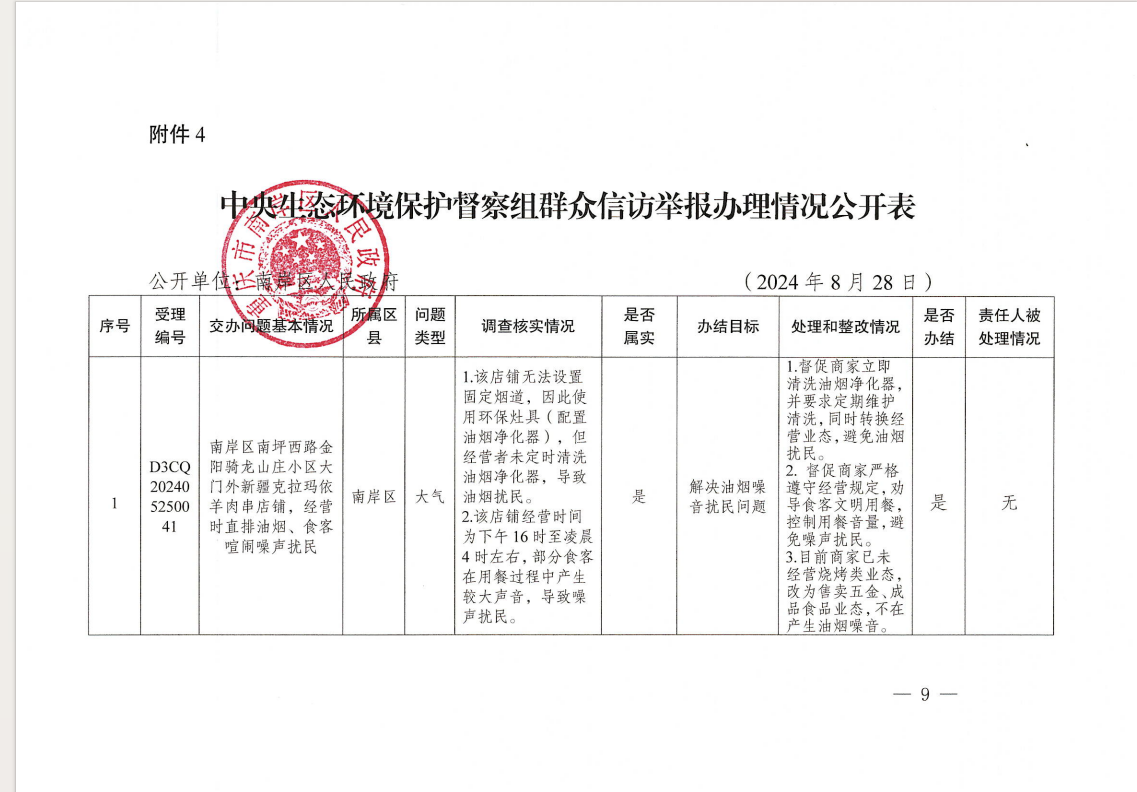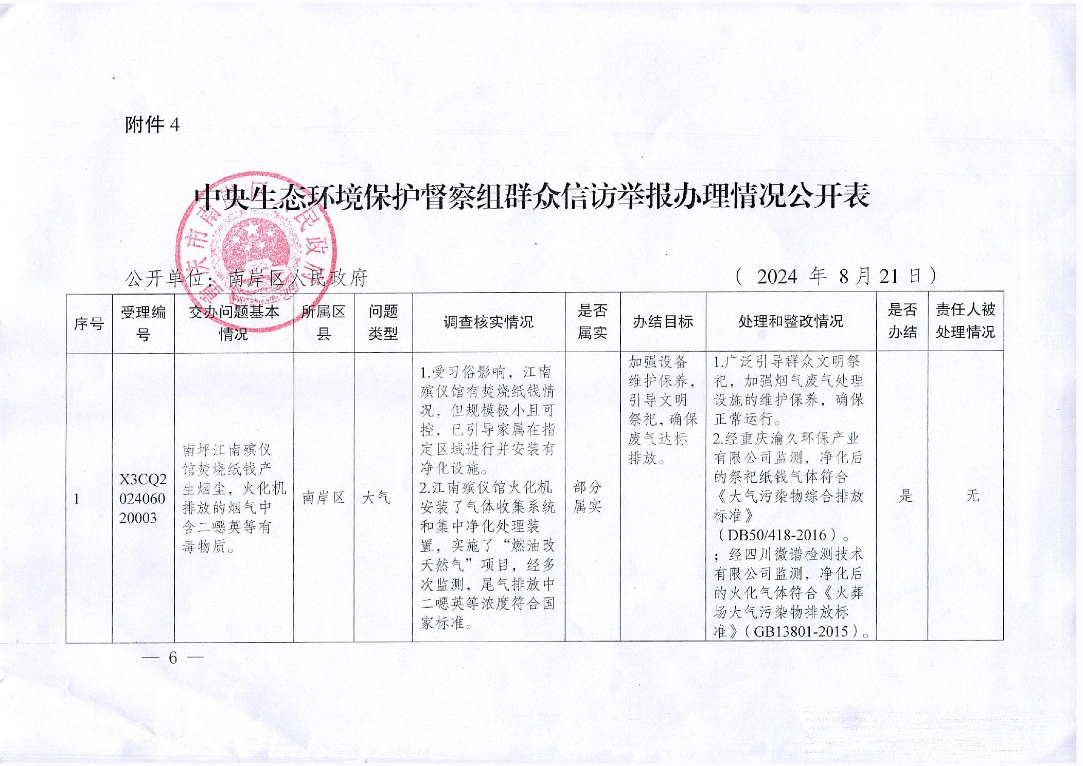 中央生态环境保护督察组群众信访举报办理情况公开表