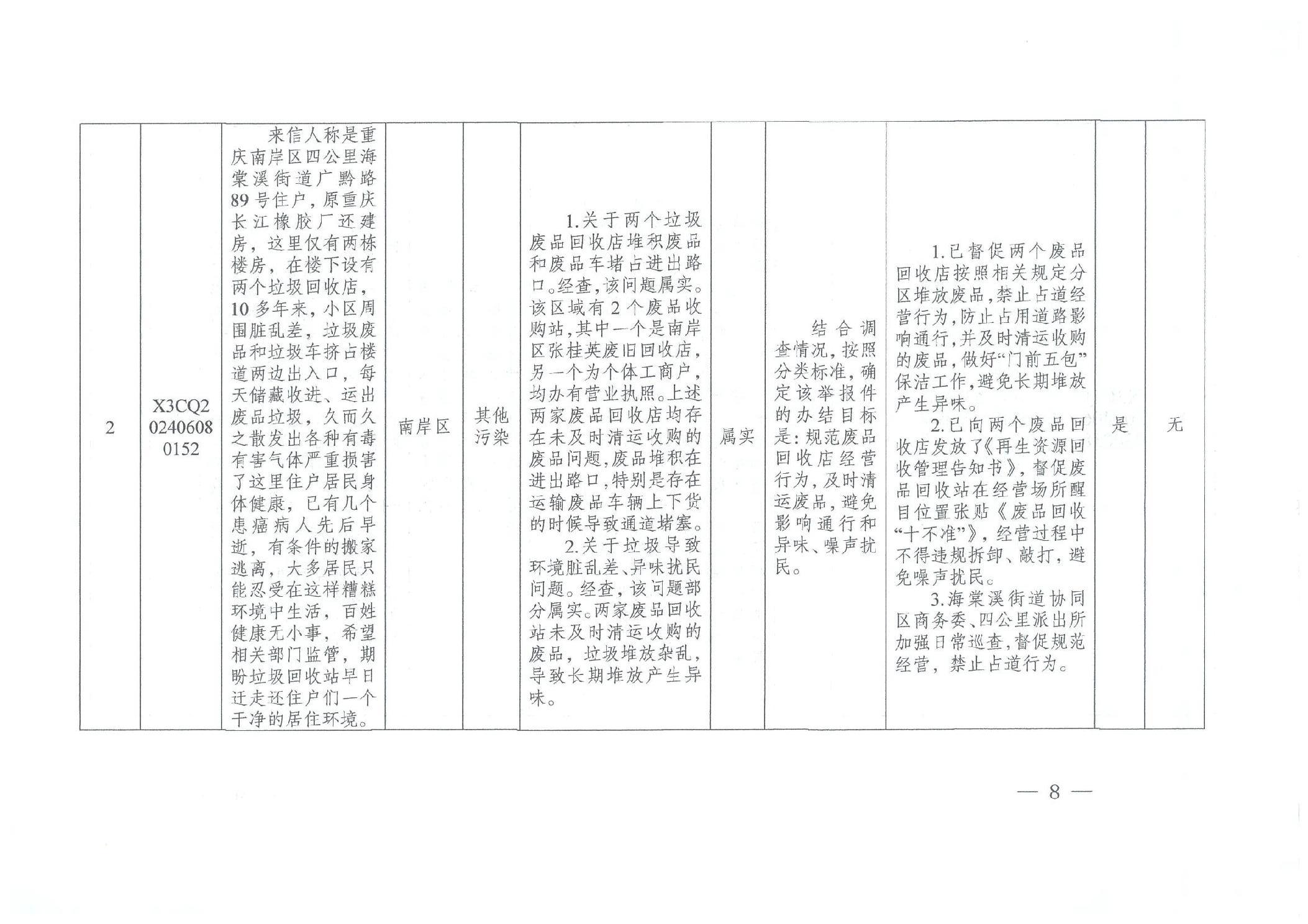 中央生态环境保护督察组群众信访举报办理情况公开表(D3CQ202405110019、X3CQ202406030058、X3CQ202406060085、X3CQ202406080152、D3CQ202405280068、D3CQ202405190084)
