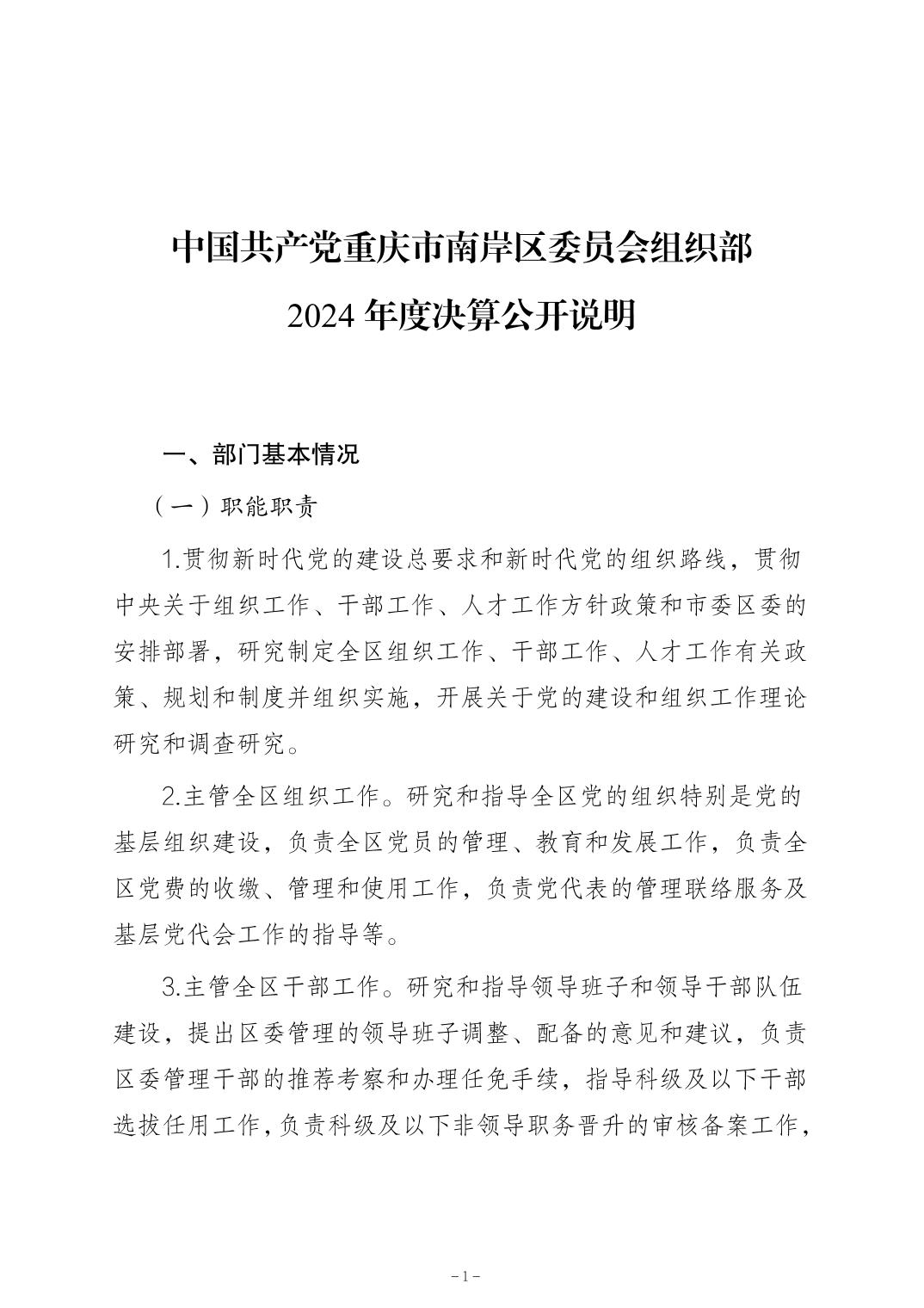 中国共产党重庆市南岸区委员会组织部2024年度决算公开说明