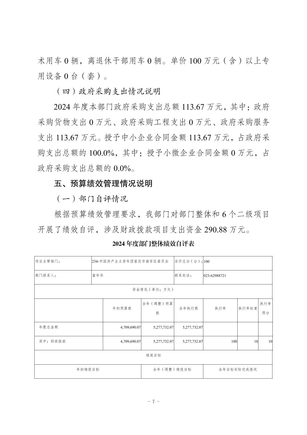 中国共产主义青年团重庆市南岸区委员会2024年度决算公开说明