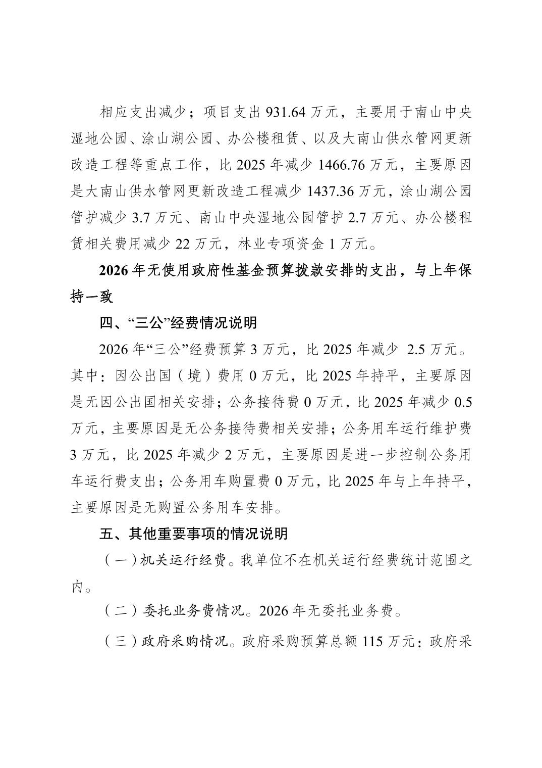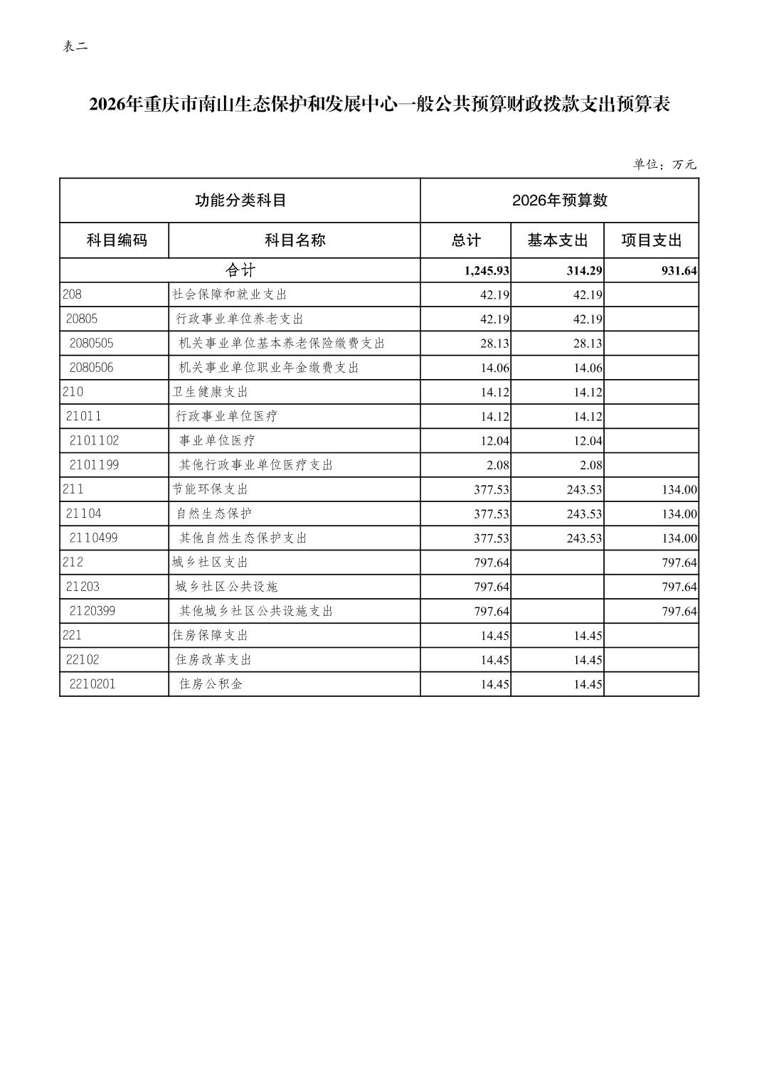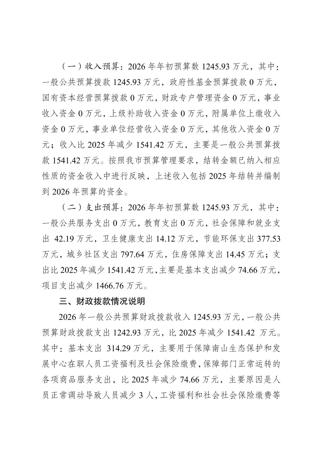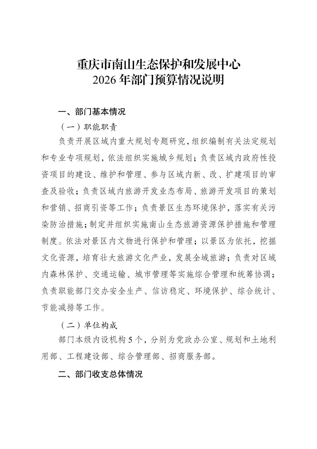 重庆市南山生态保护和发展中心2026年部门预算情况说明