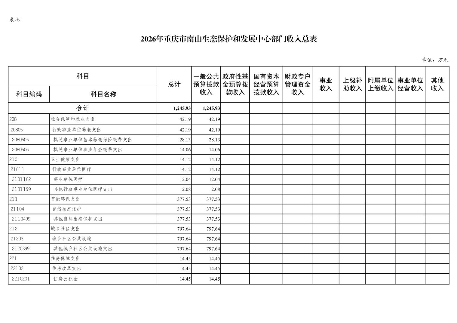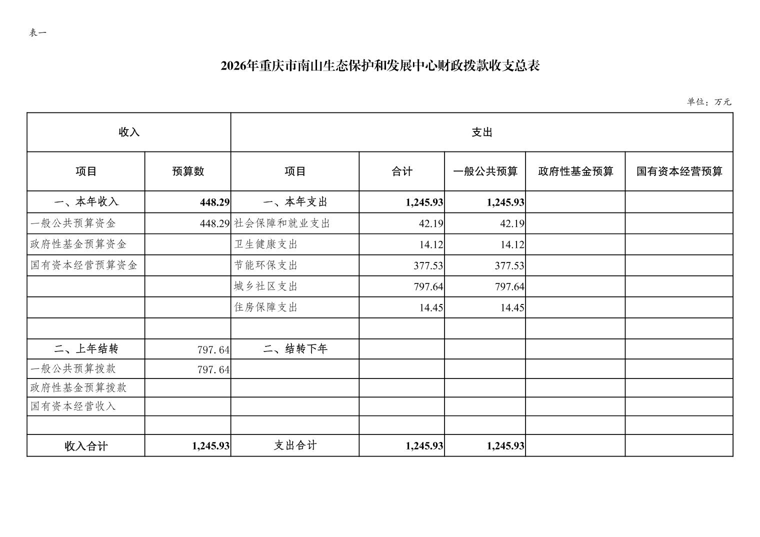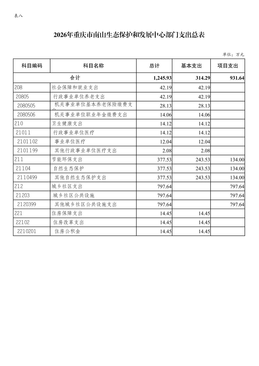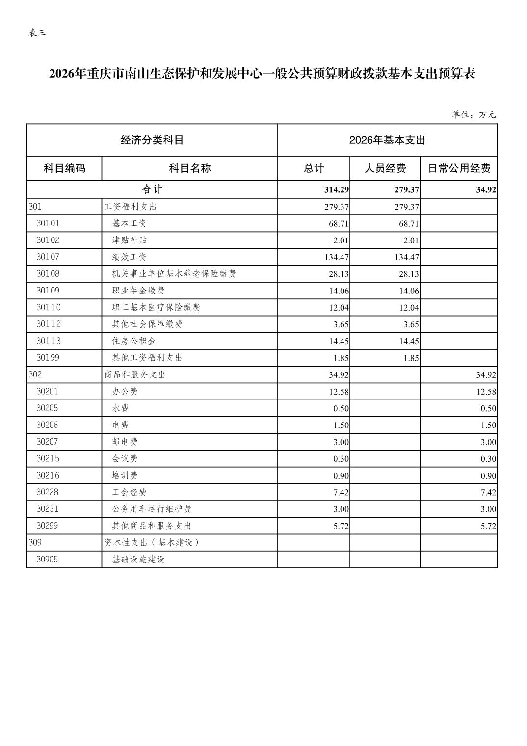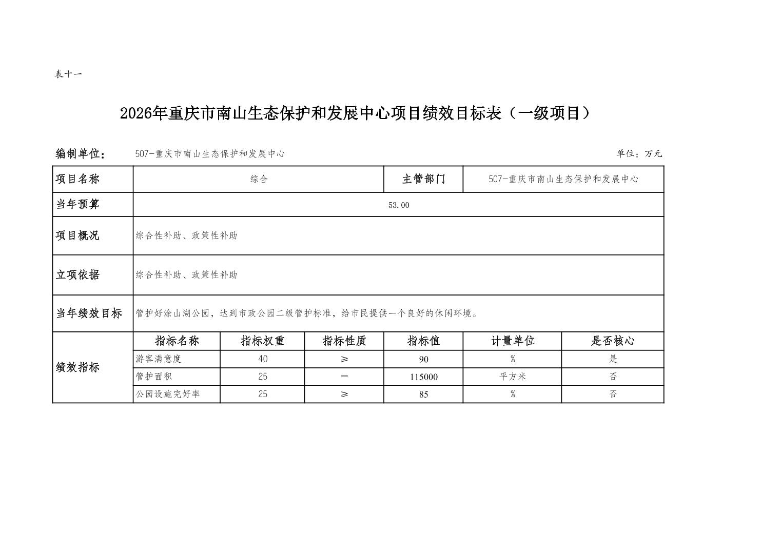 重庆市南山生态保护和发展中心2026年部门预算情况说明