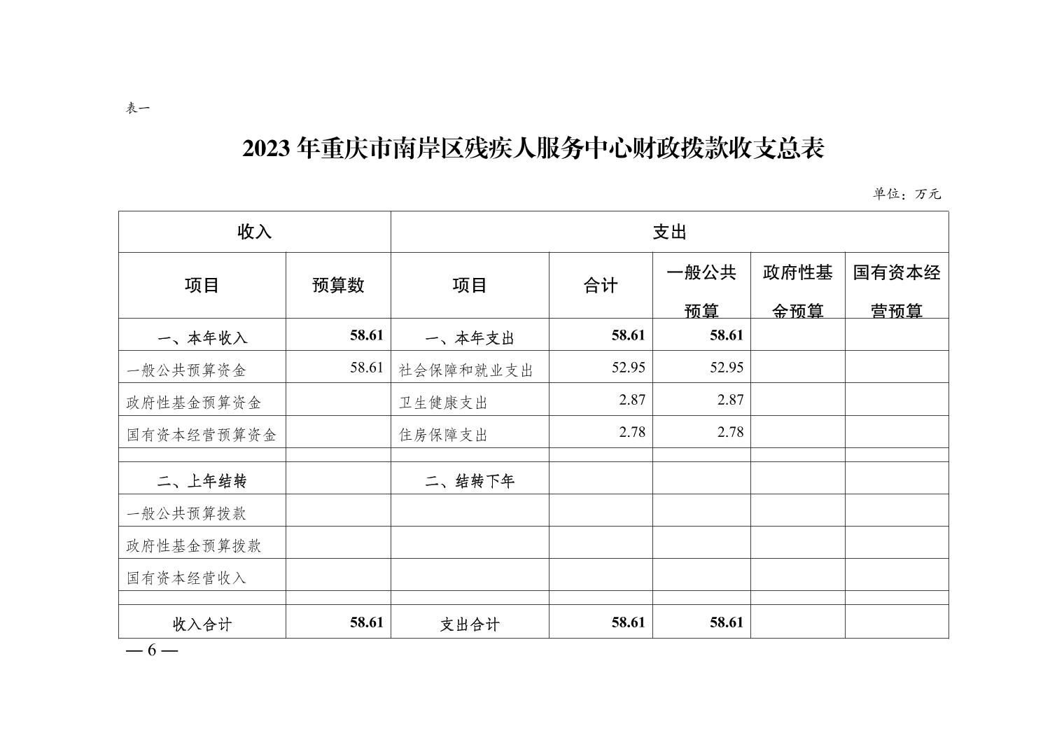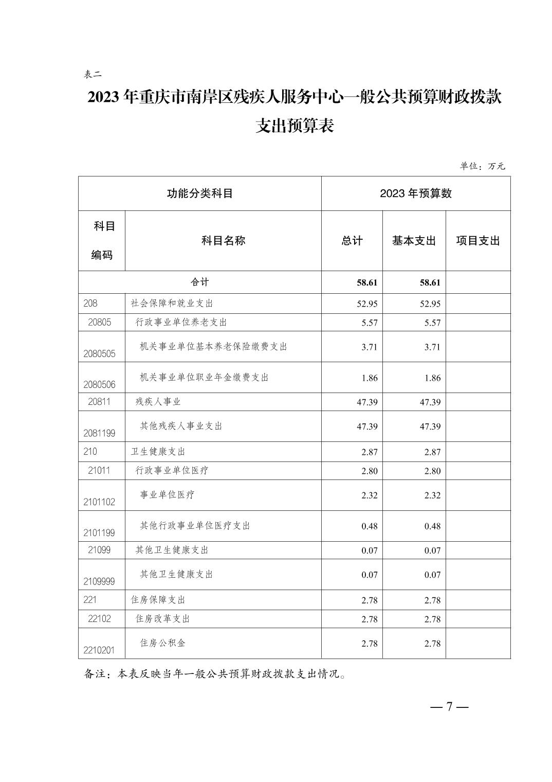 重庆市南岸区残疾人服务中心 2023 年单位预算情况说明