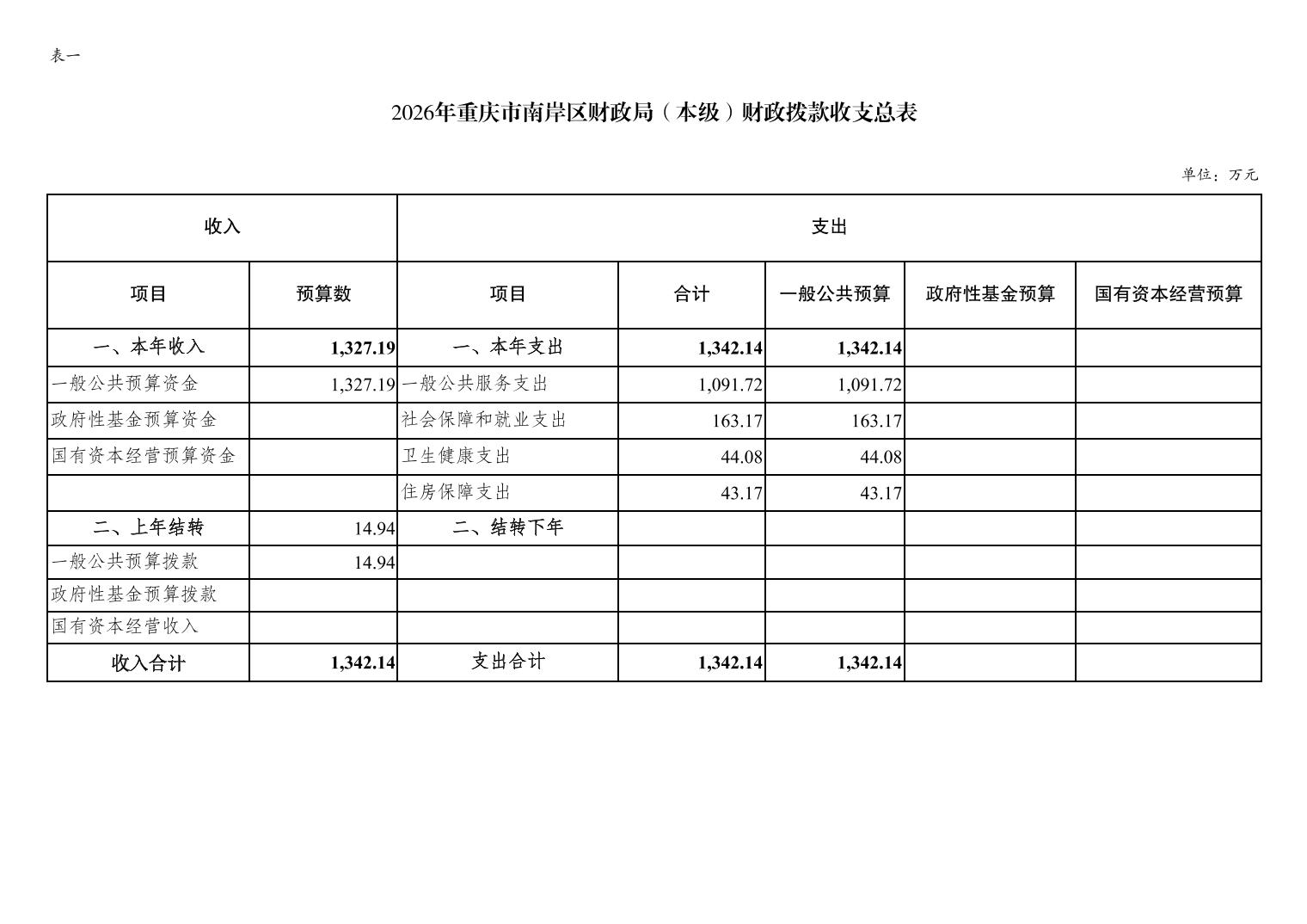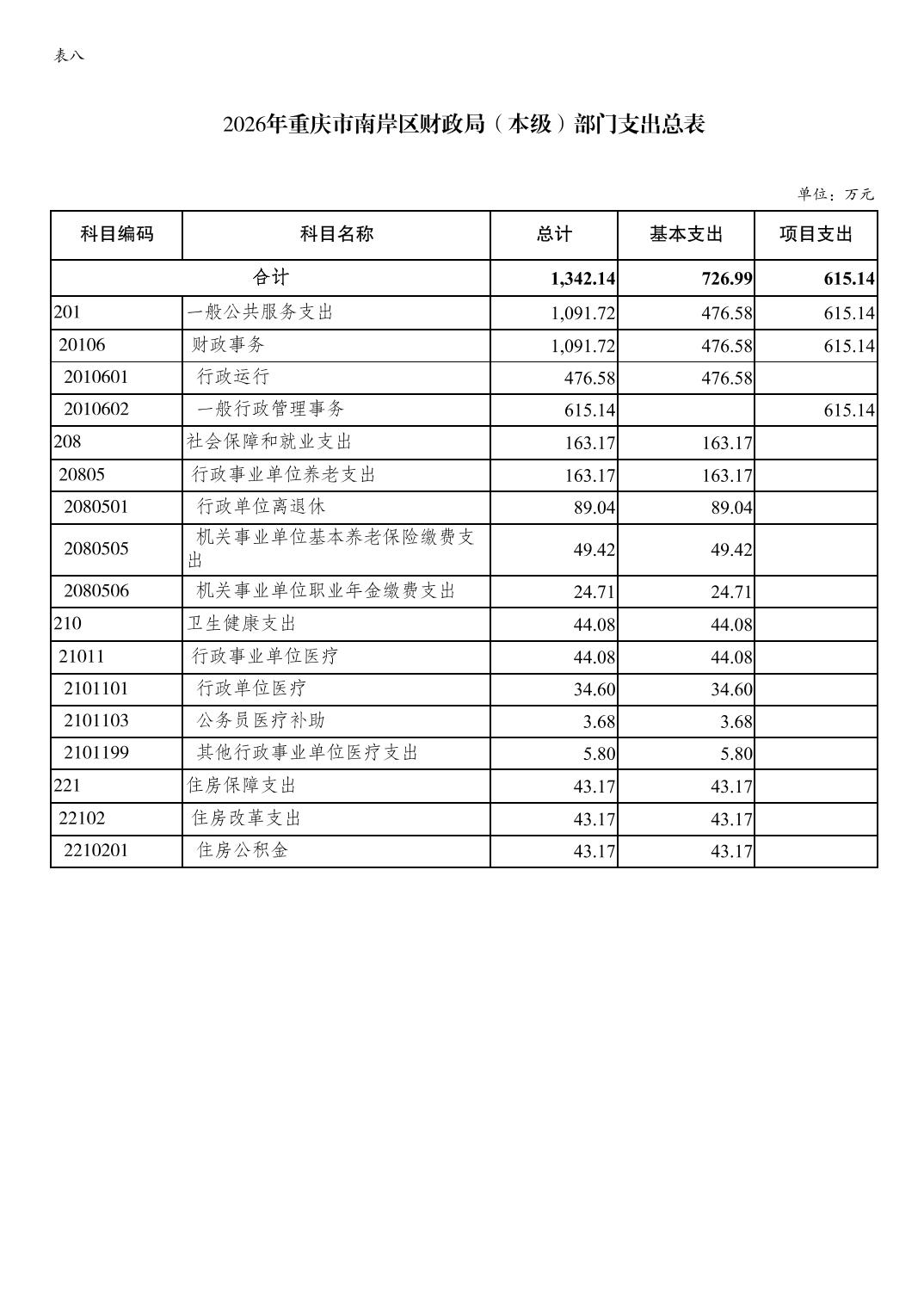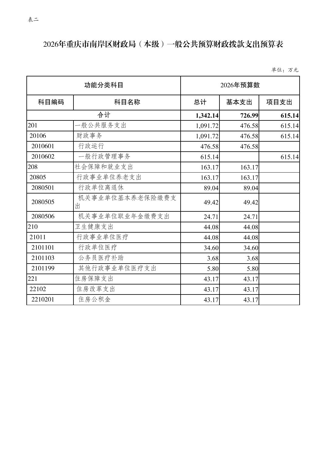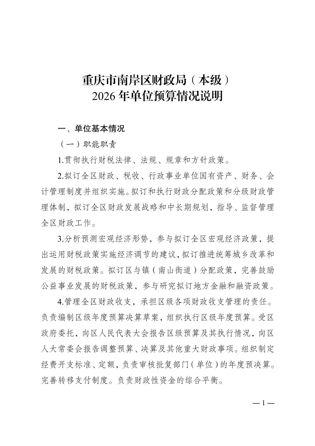 重庆市南岸区财政局(本级)2026年单位预算情况说明